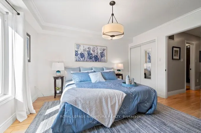 Absolutely perfect 3 bedroom, 3 bath Townhome in Cooksville. Largest model in the complex. This property shows 10+. From the incredible Primary suite featuring a sitting area with fireplace, custom built in Closet/Cabinetry, Expanded window to let in the sun, and the Spa level ensuite with a two seater jacuzzi tub, large stand up shower, and beautiful finishing, to the updated Kitchen with stone counter tops, stainless appliances and granite sink. All bedrooms are oversized and filled with light. The finished basement has a powder room and walkout to garage. Hardwood floors throughout. Upgrades galore including Automated watering system for flower, trees etc. Real ” hardwood throughout ( not engineered). LVP in basement family room Electric Floor heat system in Master and Family Bathrooms Upgraded trim baseboards and crown molding Spa tub and shower jets Upgraded stair treads (increased size for safety and comfort)Soundproofing Smooth ceiling. Newer Windows, roof 2024, and a fabulous private back deck. This one is a beauty!! (rare feature includes Concrete walls from roof to foundation. No noise from neighbours.). NO Kitec plumbing. , New AC 2019.