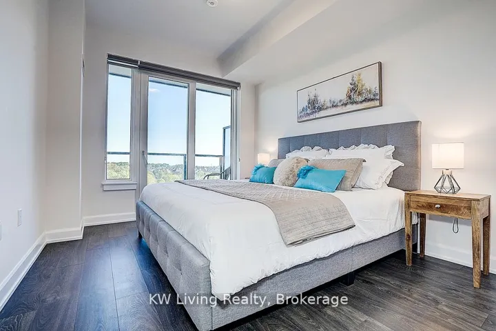 Welcome home to this beautiful 2-bedroom corner suite at the prestigious Upper West Side Condos by Branthaven. Experience elevated urban living in this stunning 795 SF residence, defined by soaring 9-foot ceilings and expansive floor-to-ceiling windows that wrap the open-concept living space in panoramic views and natural light. The gourmet kitchen is a true showstopper, featuring a chic white herringbone backsplash, sleek quartz countertops, and an oversized centre island perfect for hosting. A rare dual-balcony layout offers the ultimate private retreat, as both bedrooms enjoy their own outdoor spaces through elegant double-sliding glass doors. This suite includes one underground parking space and one storage locker. Residents enjoy world-class amenities, including an 11th-floor rooftop terrace with a chef’s kitchen, a fitness centre, and a yoga studio. Perfectly situated in North Oakville, you are steps away from the area’s best shopping, dining, and transit with easy access to major highways.