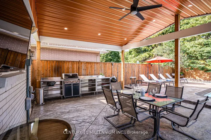 This stunning modern home, located in the highly sought-after Ridgehill Manor community of Brampton, offers impeccable design and craftsmanship with no detail overlooked. Simply move in and enjoy a lifestyle of comfort and luxury. Step into a true entertainers paradise featuring a professionally landscaped backyard that looks straight out of Homes & Gardens magazine. Highlights include a 16′ x 32′ heated in-ground pool, seamless stamped concrete surfaces, anda breathtaking loggia with a cathedral ceiling, built-in BBQ, surround sound, and TV connectivity. The impressive exterior continues with a double-width patterned concrete driveway accommodating six vehicles, a 1.5-car garage, and a custom covered front porch. Inside, you’re welcomed by a spacious foyer with a frosted glass closet door and refined finishes throughout. The oversized, modern kitchen is a chefs dream, showcasing two-tone custom cabinetry, a large island with breakfast bar, commercial-grade gas cooktop with high end exhaust system, and stainless steel appliances. The open-concept living and dining area boasts upgraded engineered hardwood flooring and a sleek gas fireplace. Generously sized bedrooms feature refinished hardwood floors and built-in closets with organizers. The luxurious primary ensuite bath offers a spa-like experience with heated flooring, double sinks, and a large glass-enclosed shower. In total, the home offers four fully renovated bathrooms. Additional upgrades include: premium millwork and interior doors, updated electrical and plumbing systems, energy-efficient vinyl windows, stucco exterior with added insulation, tankless water heater, and central air conditioning. The lower level provides a stylish and functional retreat, with luxury vinyl flooring, a spacious fourth bedroom, a modern three-piece bath with a separate shower, and a well-appointed laundry room.This is a truly turn-key property that blends elegance, functionality, and comfort. A must-see, shows 10+++