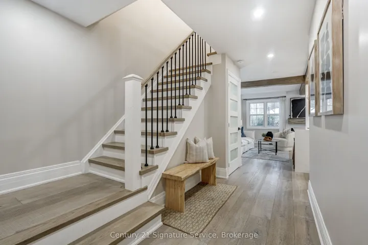 Welcome to Rockwood Village, one of East Mississauga’s most established family-friendly communities, surrounded by green space and connected trails. This fully renovated townhome is a true showpiece, ideally located within the complex near visitor parking, playground, and tennis courts. The open concept kitchen features waterfall quartz countertops, stainless steel appliances, added built-in cabinetry, and under-valance lighting. It opens into bright living and dining spaces with rustic beams and engineered flooring, shiplap accent walls, and a fireplace. Walk out to your private backyard stone patio with views of the tennis courts and park. Upstairs, the primary bedroom offers a full ensuite, three custom built-in closets and a private balcony. All bathrooms have been beautifully updated with a clean, modern design. The finished lower level adds flexible living space with a large recreation room, full bathroom, and wood-burning fireplace. Steps to the Etobicoke Creek Trail system and minutes to Centennial Park, golf courses, transit, Dixie GO, Pearson Airport, and major highways including the 401, 403, 427, and QEW. Walk to Longos and enjoy nearby parks, playgrounds, tennis courts, and splash pads. Maintenance fees include exterior maintenance, lawn care, internet, cable TV, and water. Too many upgrades to list, this one is a must see! Don’t miss out, book your showing today!