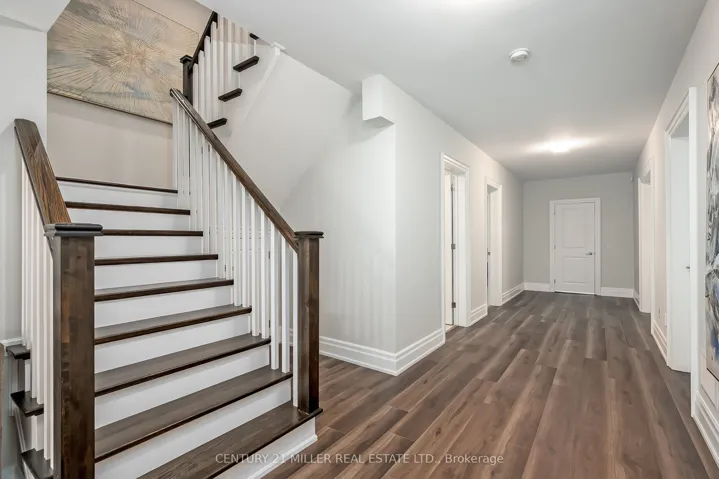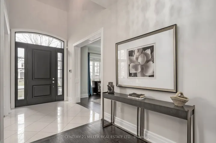 Set on a well-loved street in established West Oakville, this inviting custom family home blends contemporary refinement w/everyday comfort. The west-facing rear yard is thoughtfully curated with intentional hardscaping, mixed evergreens + topiary + stone-lined pool. Mature cedars + flat stone pavers lead to a peaked portico + stately entry, opening to a refined interior w/soaring ceilings + expansive glazing. Spacious principal spaces feature vaulted ceilings, detailed millwork, warm oak hardwood + neutral marble tile. The living room is anchored by a Palladium window; the dining room offers coffered ceilings with two-step crown. A well-placed servery connects to the kitchen, ideal for everyday living + hosting. The family room features custom cabinetry + fireplace, while the breakfast area opens to the rear portico overlooking the pool. Mudroom, laundry + garage access are tucked away. The second level offers a vaulted primary retreat with private balcony, walk-in + spa-inspired bath. Three additional bedrooms provide generous space, one with ensuite, two sharing a well-appointed bath. The lower level is bright ,functional + fun with egress windows, a rec room, games area, wet bar, gym, guest bedroom + full bath. Designed for effortless entertaining, the rear yard unfolds across stone patios with dining area + built-in bar, portico lounge, pool + upper balcony above, creating a private, layered outdoor retreat. What you hope for in a custom built home in a much-loved West Oakville pocket.