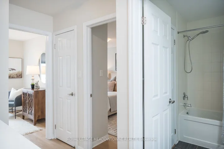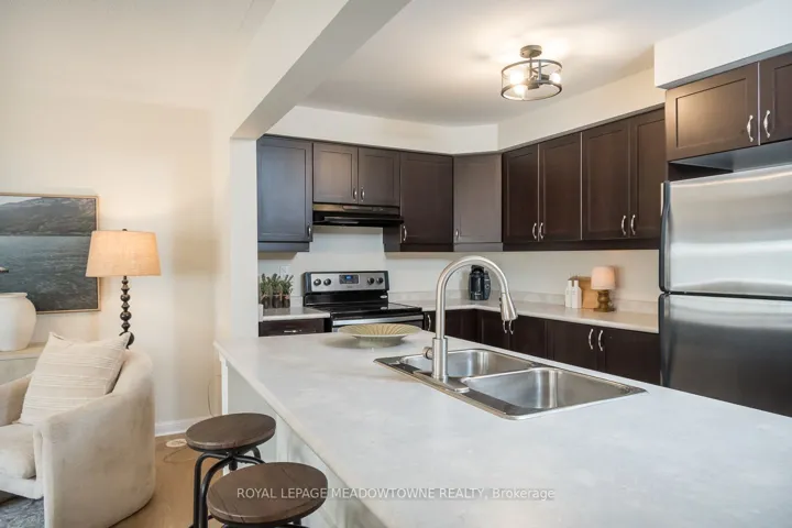 Welcome to this beautifully updated townhome in Milton’s sought-after Willmott neighbourhood offering stylish & low-maintenance living in a prime location. This 2-bedroom, 1.5-bath home features newly installed flooring, updated lights and fresh paint throughout creating a modern and move-in-ready space. The open-concept main floor includes a chef’s kitchen equipped with stainless steel appliances, rich dark cabinetry, ample storage, and a breakfast bar peninsula that flows seamlessly into the bright living and dining area-complete with brand new flooring and direct access to a sunny balcony. Upstairs, the bedrooms feature updated flooring. The spacious primary retreat has a walk-in closet and semi-ensuite access to a refreshed 4-piece bath, while a convenient 2-piece bath is located on the main level. Enjoy the convenience of parking for two vehicles with a private driveway and garage, along with interior garage access and a functional main floor laundry room. Ideally situated close to major highways, steps away from Milton’s largest sports center, parks, trails, shopping, and everyday amenities, this home combines comfort, style, and accessibility.