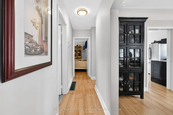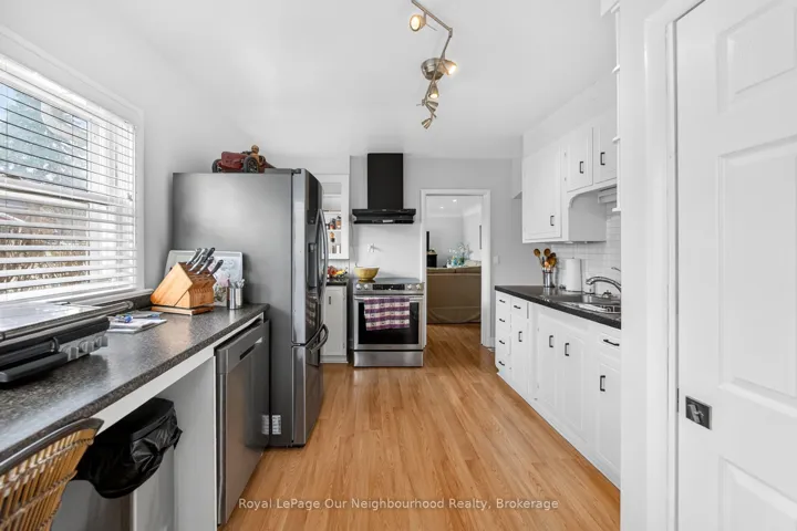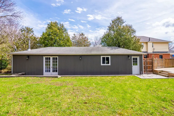 Welcome to Campbellville and this quaint and charming 2-bedroom bungalow, perfect for the down-sizer or first-time buyer. Small-town living yet so close to city amenities, this home is minutes to the 401 and a short drive to the heart of Milton. A stamped concrete walkway welcomes you to the front door. The living and dining areas feature unique crown moulding and abundant natural light. The kitchen is bright and spacious with ample counter space and a breakfast bar/prep area, while a pocket door separates it from the side entrance leading to the basement.Two well-sized bedrooms are located on the main floor, one with a walk-out to the backyard deck. The basement offers a cozy rec room with beautiful flooring and pot lights, an office area with a built-in workspace, an additional bedroom with above-grade windows and double closet, and a spacious laundry room with a 3-piece bath. A kitchenette was added during the 2022 basement renovation, along with numerous upgrades throughout. A second laundry was also added upstairs, and a brand-new water softener was installed in 2026.The fully fenced backyard is gorgeous, featuring a 2020 deck, 2019 hot tub, tasteful landscaping, and a stamped concrete walkway around the garage. The garage is truly unique, with a long and wide parking area ideal for a workshop. Beyond it, separated by sliding barn doors, is an impressive “man-cave” complete with a wood-burning stove, bar, and coffered wood ceiling, with French doors leading to the yard.This home has been very well maintained with many improvements over the years. Situated on a prime lot with significant development potential, the neighboring property is also available for sale, presenting a rare opportunity for future expansion or land assembly. Well, water, and septic studies have been completed, and when combined with the adjacent property, the site offers strong potential for a multi-use commercial/residential development or live-work townhomes.