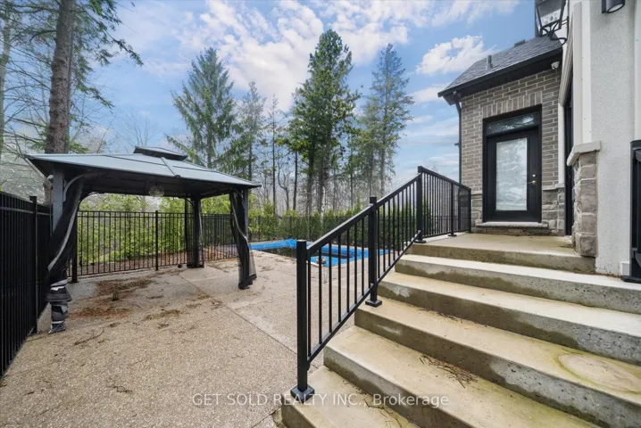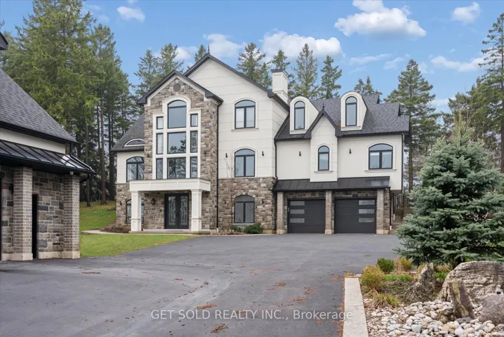 POWER OF SALE Opportunity – Luxury Estate Living in Prestigious Rural Burlington. An exceptional opportunity to acquire a grand custom-built estate set on over one acre of private, lushly landscaped grounds, surrounded by exclusive multi-million dollar residences in one of Burlington’s most coveted rural settings. Positioned behind modern security gates, this striking stone and stucco mansion offers approximately 6,000 square feet of luxurious living space, defined by expansive windows, soaring ceiling heights, and impeccable craftsmanship. A private elevator services all three levels, enhancing convenience. Designed for seamless living and entertaining, the main level showcases an elegant open-concept layout with principal rooms, coffered ceilings, designer lighting, and integrated built-in speakers. The gourmet kitchen is a true showpiece, featuring a dramatic waterfall quartz island, premium Dacor built-in appliances, and extensive custom cabinetry. The main floor primary suite delivers a private retreat experience, complete with a gas fireplace, spacious walk-in closet, direct access to the backyard terrace, and a spa-like 5-piece ensuite. The upper level offers three generously sized bedrooms, each appointed with walk-in closets and private ensuites, along with a hidden bonus space-ideal as a media lounge, playroom, or additional living area. The fully finished lower level extends the home’s luxury appeal with a dedicated theatre room, executive office, and expansive recreation area. Outdoors, the property transforms into a resort-style oasis featuring a saltwater pool, professionally landscaped grounds, and entertaining areas designed for relaxation. Additional highlights include a heated detached three-car garage with 12-foot ceilings, a sophisticated Control4 smart home system, and the rare convenience of three separate kitchens.Offered under Power of Sale