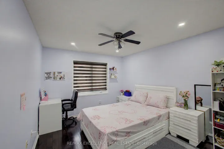 Beautifully upgraded 4-bedroom home with a 2-bedroom legal basement, located in a highly sought-after area near Hwy 407 and Mavis Rd, right on the border of Mississauga. This carpet-free home features wide hardwood flooring and elegant 2×2 ft tiles throughout the main and second floors.The home is loaded with upgrades including new triple-pane windows, fresh paint, pot lights throughout, new AC, and owned tankless water heater. Stylish California shutters and zebra blinds are installed throughout. The modern kitchen comes with granite counter top and back splash, stainless steel appliances, a gas stove, and quality finishes.The upgraded master bedroom includes a renovated ensuite bathroom. Additional highlights include a newly installed front double door, a spiral oak staircase with iron pickets, and separate switches for lights and fans in each room.The extended driveway offers parking for up to 6 cars plus 1 in the garage, with a garage door opener installed. Paved concrete backyard (no lawn care tension). Top-of-the-line video surveillance cameras installed at both the front and rear of the home are included, with no monthly monitoring fees. A perfect move-in ready home for families or investors looking for comfort, style, and income potential. Note: Bedroom Furniture edited virtually in photos
