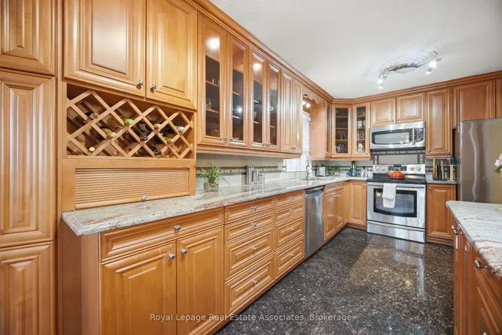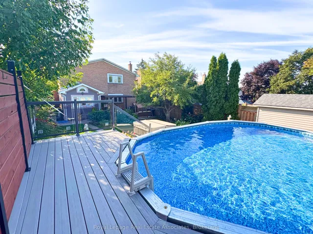 Rarely offered on a quiet, low-turnover street, this beautifully maintained detached home showcases approximately 3,137 sq. ft. of total living space on an exceptional 150-ft deep lot with no rear neighbours. Enjoy a fully fenced, private backyard-perfect for relaxing or entertaining. A separate basement entrance offers excellent in-law or future income potential. The bright, open-concept living and dining area is enhanced with hardwood flooring, large windows, custom trim moulding, and elegant lighting. A separate family room with ~9-ft ceilings is anchored by a cozy wood-burning fireplace with a quartz surround. The updated gourmet kitchen boasts extended cabinetry, granite countertops and flooring, a custom backsplash, centre island, & stainless steel appliances. A permitted breakfast area addition (2007) includes a walkout to the backyard. Upstairs, hardwood flooring and smooth ceilings continue throughout. The spacious primary retreat offers a walk-in closet & a 5-piece ensuite. Two additional generously sized bedrooms & a 4-piece bathroom with a jacuzzi tub complete the upper level. The finished lower level with separate entrance includes a kitchen, open living area,3-piece bath, private room, a dedicated custom walk-in closet space, & ample storage-ideal for extended family or potential suite use. Step outside to a true backyard oasis featuring an interlock patio, louvered pergola, above-ground pool with composite deck w/privacy fence (2021),hot tub, shed,and gas BBQ line. Additional updates include roof (~2 yrs), furnace (~3 yrs), electrical panel (~3 yrs), pool liner (~2 yrs), landscaping front entrance with railings (2024) & owned hot water tank. Ideally located close to parks, top-rated schools including Burnhamthorpe PS & Tomken Road Senior PS, shopping, transit (direct bus to Kipling), & major highways, and within walking distance to Burnhamthorpe CC & Library. Exceptionally well maintained-just move in & enjoy!