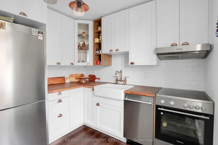 Welcome to 37-1347 Lakeshore Road, a beautiful fully renovated 2-bedroom, 1-bath co-op in the heart of downtown Burlington. Offering 832 sq ft of fully transformed space, this home blends modern function with vintage charm-just steps from Spencer Smith Park, the waterfront trail, and Lake Ontario views.Every detail has been thoughtfully upgraded, including new drywall and a full electrical overhaul for safety and modern living. New swing-out windows welcome fresh lake breezes, while dark wood-style floors add warmth throughout.The kitchen shines with burnished copper fixtures, butcher block counters, and a classic white farmhouse sink. The bathroom echoes a 1949 film noir aesthetic, fully tiled in black and white with a vintage-style sink. Refined finishes-bronze hardware, modern wainscotting, detailed trim, and a spacious French-door closet-enhance the space.Equipped with premium compact Blomberg appliances, this unit balances style and efficiency. A black fire-rated front door with Deco silver numbering completes the look, merging heritage with contemporary design.Steps to the lake, trails, dining, and with easy highway access, this is Burlington living at its best-a rare find for those who value style, quality, and location. Your lakeside lifestyle starts her.