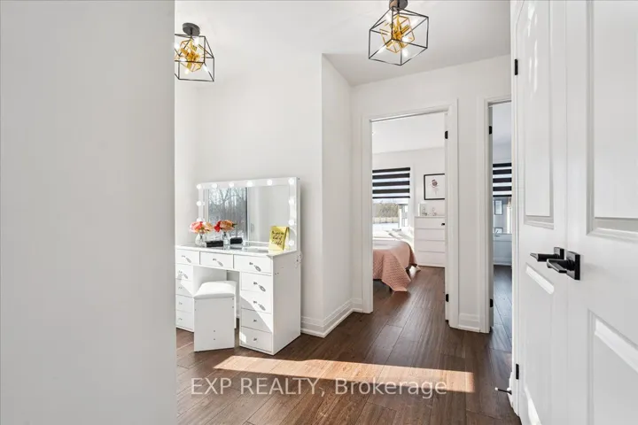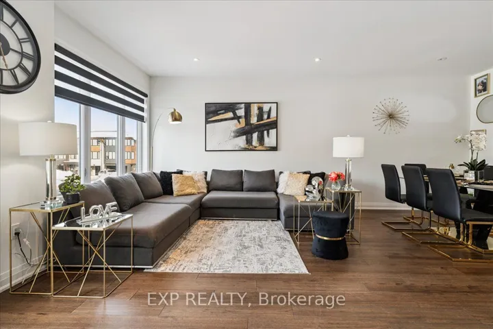 WELCOME HOME to modern luxury at its finest! A stunning, nearly new (built by Worthington Homes) freehold end-unit townhome with rare two-car garage and double driveway in Georgetown’s highly sought-after Trafalgar Square community. This home is perfectly positioned on a premium lot without rear neighbours, just steps from The Club at North Halton Golf Course – the ideal blend of nature’s serenity and City convenience. Flooded with natural light, this beauty showcases elegant contemporary finishes including wide-plank hardwood floors, quartz counters in the kitchen and bathrooms, premium ceramic tile, upgraded pot lights, gorgeous chandeliers, and contemporary custom zebra blinds throughout which are remoted-controlled in the primary suite and family room!! The ground level offers a versatile walk-out to the fully fenced yard from the recreation room or home office and direct access to the oversized two-car garage. The main level features a bright, open-concept large family room and dining space with huge windows and custom fireplace feature wall, perfect for entertaining. The chef-inspired large eat-in kitchen is equipped with stainless steel appliances, soft-close cabinetry, and a walk-out to the deck overlooking the private backyard and beautiful green space . . . no neighbours behind! Upstairs, the spacious primary suite enjoys tranquil nature views, a walk-in closet, and a luxurious 3-piece ensuite with an oversized glass shower featuring floor-to-ceiling tile. Two additional generously sized bedrooms, a full main bathroom, practical laundry, and a convenient den/media niche completes the third floor! Ideally located minutes from Downtown Georgetown, the GO Station, Highway 401, shops, restaurants, the hospital, conservation, trails, the fairground and Trafalgar Sports Park. This turn-key home offers the perfect balance of small-town charm & urban style in the City!! Your future home awaits – don’t miss this incredible opportunity to make it yours!