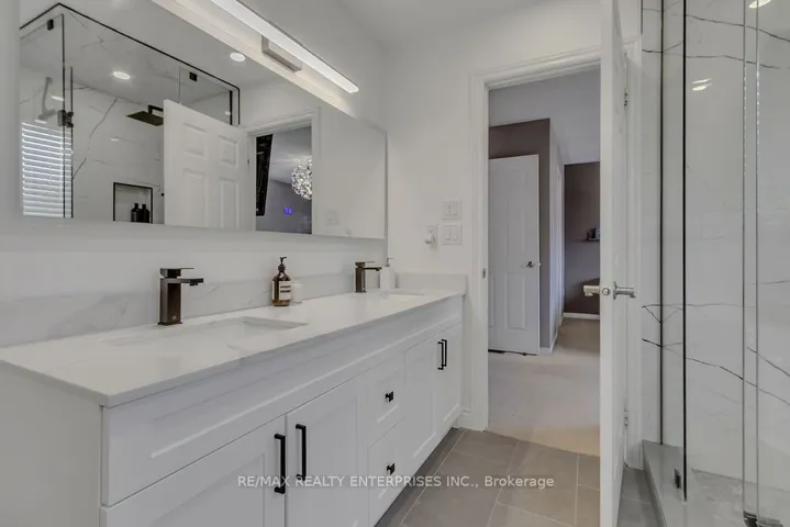 Welcome to this stunning newly-updated semi-detached home in prime Churchill Meadows! 2226 sq ft total living space. Main fl boasts 9 foot ceilings,features a beautiful updated kitchen w marble back splash, undermount Blanco sink, island, quartz countertops & new Kitchen Aid fridge, Bosch dishwasher. Open concept design with newly renovated stairs, rod-iron pickets, main fl laundry, garage access to laundry & Electric fireplace. Low-maint backyard with artificial turf & entertainment area. Spa-like bathrooms with ensuite that includes full-glass walk-in shower & stand-alone tub. Finished basement can also be used as spare bedrm. Inclds rec rm with bar, 2pc washrm & space for a gym. The extr is meticulously maintained with new front doors & garage door. Driveway accommodates 3 car parking for a larger family. This sought after location is walking distance to top-rated schools, as well as nearby parks, transit (403/407), Credit Valley Hospital, restaurants, banks, shopping.