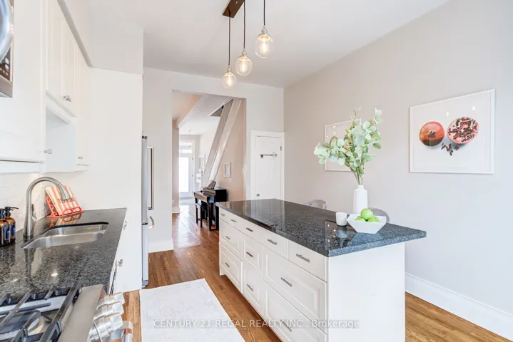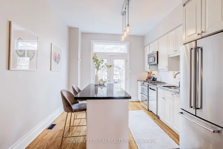 Discover the perfect blend of historic charm and modern luxury at 36 Golden Ave, a thoughtfully reimagined 2-storey, 3-bedroom Victorian hidden in a cul-de-sac within one of Toronto’s most beloved neighborhoods. This stunning home offers an ideal entry point for young families or professionals seeking the vibrant, community-focused lifestyle of Roncesvalles. You’re steps away from incredible, neighborhood cafes, restaurants, farmers markets, parks, and easy transit access. This classic, red brick beauty features an inviting yet chic exterior with new concrete slab, updated front door and new front windows. Ideal open concept living with tons of natural light, the main floor boasts high ceilings and a spacious layout. The renovated, Chef’s kitchen features a fabulous, large, kitchen island with ample storage, timeless granite countertops, updated cabinetry with under-mount lighting, and premium appliances – including a new Cafe gas range with convection, double oven, 6 burners, and integrated griddle. Walk out through classic French doors to a low-maintenance, private backyard with gas line, perfect for fun bbqs all year long, or having a cup of coffee, enjoying the garden during warmer months in your private oasis. Includes coveted laneway access parking. The upper level boasts tranquil bedrooms. The primary bedroom has great storage with new closets and a cozy bay window banquette. The second bedroom offers added convenience with a full-size washer/dryer system. Enjoy your sleek, spa-like second-floor bathroom featuring a custom frameless glass shower, designer wall-mounted rain shower head, separate wand, Carrara-inspired tiles, and built in storage. The finished basement has brand-new flooring, a renovated 4-piece bathroom, and an upgraded underground sewer system with back flow valve/preventor (2023). This turn-key home offers everything you need to live in one of the most sought-after neighborhoods in the city.