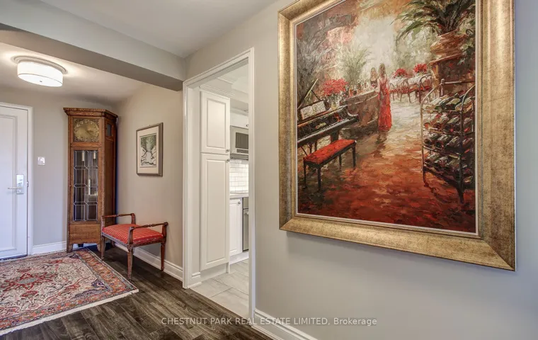 Introducing the “Fairways” a sought-after award award-winning condominium offering a resort lifestyle, and set on 5 acres with lush gardens and terraces. It’s an extraordinary opportunity to own a spacious condo apartment, located in the North Tower close to most of the onsite amenities. This elegant suite offers approximately 1385 sq ft of well-designed living space and has been renovated. Included are high-end stainless steel appliances, quartz countertops, plaster crown mouldings, a cozy electric fireplace, custom built-in cabinetry in guest bedroom as well as kitchen and storage room and a built-in desk in primary bedroom/ solar blinds in living room with remote control. Generous in-suite storage and closet space as well as a separate locker unit. Enjoy relaxation and socializing in the recreational amenities which include historic Mc Master House for your private functions, an outdoor heated pool, gym, locker rooms, sauna, card room, putting green, shuffle board, tennis and pickle ball court, gazebo with BBQ’s, library, billiards and games room, and even a carwash and workshop! It’s all included in a gated community setting with weekday concierge and 24-hour security. You’re only minutes away from the historic Village of Port Credit with its excellent dining venues and shops, as well as nearby Mississauga Hospital, GO train, Mississauga Centre for the Performing Arts, Sherway Gardens, the Airport