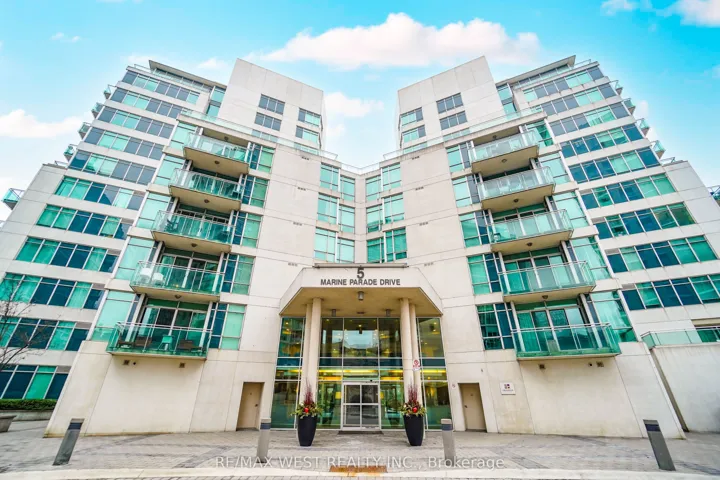 Welcome to luxury lakeside living at 5 Marine Parade Drive. This fully renovated suite offers a bright, open-concept layout with modern finishes, soaring 9-foot ceilings, and stylish design throughout. The spacious one bedroom plus den includes a built-in closet in the den. Enjoy the convenience of ensuite laundry and the rare bonus of two owned parking spots. Walk out to your huge 23′ open balcony with South East Exposure of the lake! Located just steps to the lake, trails, parks, and waterfront cafes-only minutes to downtown Toronto and the Gardiner Expressway. Maintenance covers utilities (except cable TV). Very quiet condo featuring luxury amenities designed for comfort and lifestyle. Some photos virtually staged.