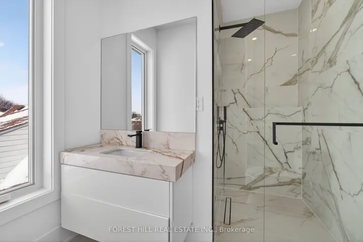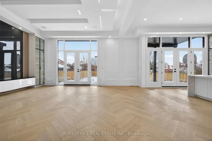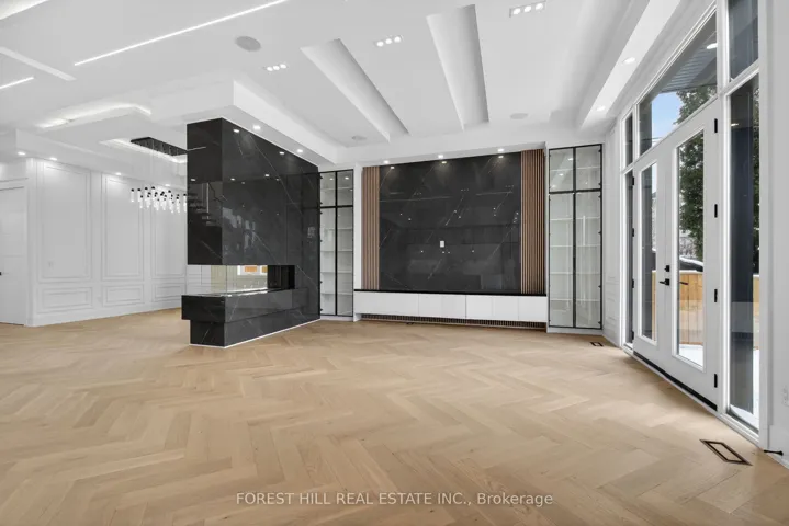 Absolutely stunning modern custom-built home in a prime Toronto location, showcasing exceptional craftsmanship and luxury designer finishes throughout. No expense spared in this architectural masterpiece featuring soaring 24-ft ceilings in the grand open-to-above foyer, dramatic custom millwork, extensive wainscoting and crown moulding, and rich herringbone-style hardwood flooring throughout. Thoughtfully designed with impeccable attention to detail, this home offers 12-ft ceilings on the main floor and 11-ft ceilings on the second floor, complemented by custom lighting, built-in surround sound, and high-end decor elements that elevate every space. The open-concept layout seamlessly blends elegance and functionality, highlighted by a stunning 3-sided fireplace connecting the dining and family rooms, a marble feature wall with custom cabinetry, and a designer chef’s kitchen with premium panelled Jenn Air appliances, Wolf cooking package, oversized centre island, and a fully equipped walk-in pantry. Walk out to a beautifully finished composite deck and private patio, perfect for outdoor entertaining. Additional features include a Cambridge elevator servicing all levels, a custom floating wood staircase with glass railing, a main floor office with floor-to-ceiling windows, and a mudroom with built-in storage and marble finishes. The second level offers spacious bedrooms with ensuites and a luxurious primary retreat with fireplace, balcony, spa-inspired 5-piece ensuite, and custom walk-in closet. The fully finished lower level includes a separate apartment setup with walkout, full kitchen, additional bedrooms, recreation space with bar, and second laundry. Complete with 400-amp service, two tankless water heaters, and a total of 7 bedrooms and 8 bathrooms, this extraordinary residence delivers unparalleled luxury living inside and out, all within close proximity to Yorkdale Mall, Allen Road, and Highway 401.