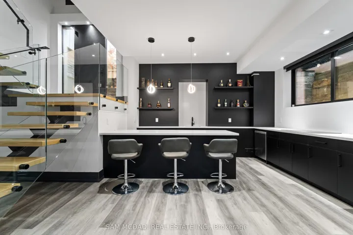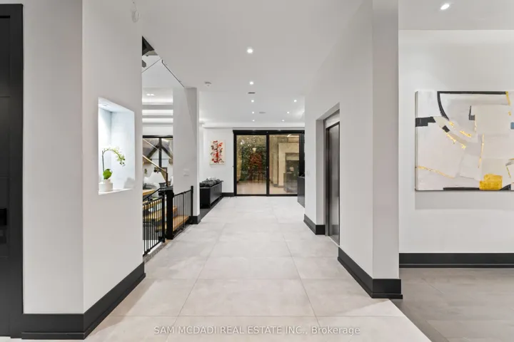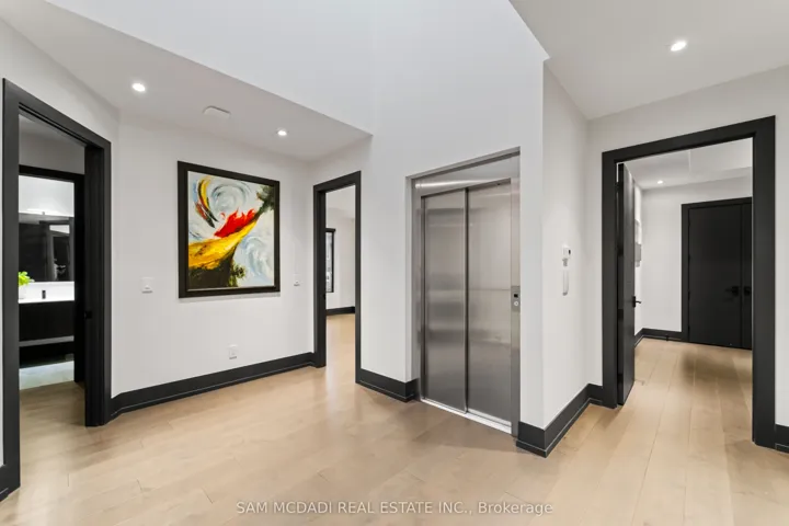 Welcome to 417 Union Street, an exceptional modern home nestled in the heart of prestigious Old Oakville. Completed in 2023, this one-of-a-kind residence blends modern farmhouse inspiration with refined contemporary and traditional design elements, creating a home that is both striking and timeless. The modern farmhouse exterior showcases clean lines, black-framed windows, and a harmonious mix of materials, complemented by a covered porch, professionally landscaped front and back yards, and a stone six-car driveway. The backyard offers a private retreat with a deck, stone patio, and custom garden shed. Inside, the home is filled with natural light and defined by a modern, sleek interior. Wide-plank engineered hardwood flooring, custom ceilings with integrated LED lighting, and large-format matte tiles elevate the main living areas. The chef-inspired kitchen features quartz countertops and backsplash, an oversized centre island, built-in Bosch appliances, and a convenient adjoining servery. A tiered maple staircase with glass railings leads to the upper level, where skylights continue the home’s bright and airy feel. The expansive primary suite spans over 700 square feet and offers two walk-in closets and a luxurious five-piece ensuite with double vanity, freestanding tub, and glass-enclosed rainfall shower. Three additional bedrooms each include their own custom three-piece ensuite with modern walk-in showers. The fully finished lower level adds outstanding versatility with a second kitchen, large recreation room, two additional bedrooms with ensuites, and a powder room. Additional highlights include an elevator servicing all three levels, 10-ft ceilings on the main and lower levels, pot lights, blackout blinds, built-in speakers, and a security system. Ideally located minutes from Lake Ontario, parks, trails, Oakville GO, the QEW, and top-ranked schools including Appleby College, this home delivers modern luxury, thoughtful design, and an exceptional lifestyle.