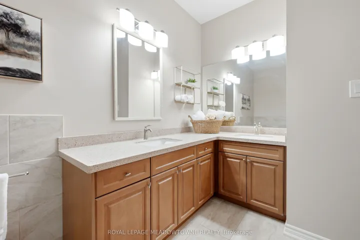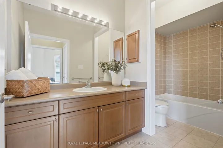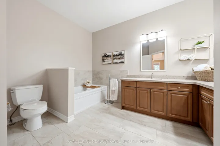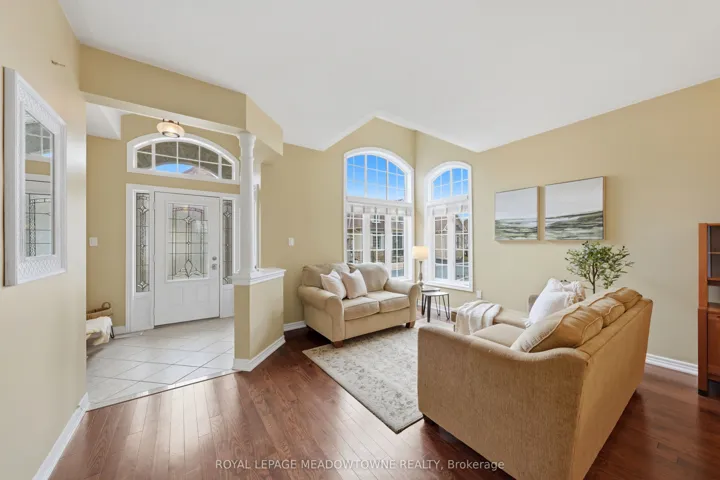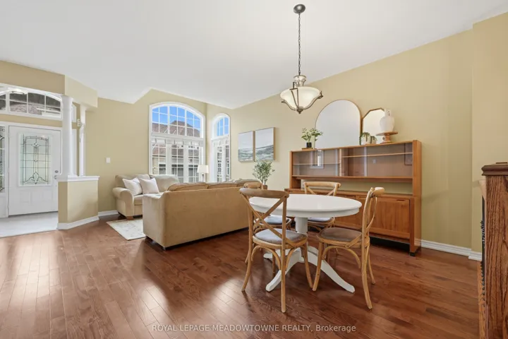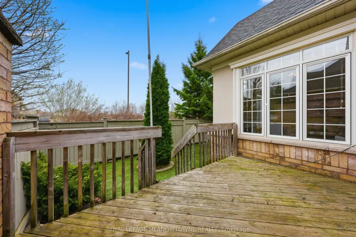 Beautiful 2-bedroom, 2-bathroom bungalow with low-maintenance living with parking for 2 cars (1 garage & 1 on upgraded rubber driveway). The home features gleaming hardwood flooring throughout, tile in the eat-in kitchen, & impressive 9-foot ceilings that enhance the bright, open feel. The front entrance with closet leads into the formal living & dining room at the front of the home, highlighted by hardwood flooring and a large feature window allowing natural light to pour in. The eat-in kitchen offers excellent flow with a centre sit-up island overlooking the breakfast area and family room. Features include quartz countertops, stainless steel appliances, double sink, and ample cabinetry including pantry. The family room is warm and inviting with a cathedral ceiling, gas fireplace, and four windows that brighten the space. A walk-out from the kitchen leads to the backyard. Off the kitchen is the mudroom & laundry space that provides tile flooring, access to the garage, large double closet & an additional walk-out to the backyard. The spacious primary suite features a tray ceiling, walk-in closet, large window, & 5pc ensuite with deep soaker tub including a handheld shower head, 2 sinks, and separate glassed shower. The second bedroom is generously sized with two arched windows & closet space. Hardwood stairs lead to the unfinished basement, offering great potential to create additional living space with the high ceiling height, open space and rough-in for an additional bathroom. Enjoy easy maintenance with turf in both the front & backyard, plus a private deck space to relax outdoors. Some notable features include; Shingles (2020), Furnace (2021), AC (2021), Rubber Driveway, Turf Landscaping, Hardwood Flooring, and Whirlpool stainless steel appliances. Conveniently located within walking distance to grocery stores, restaurants, shopping, church, parks & more. Common Elements fee of $155/Mth For Snow Removal, Garbage Pickup, Common Elements Maintenance.
