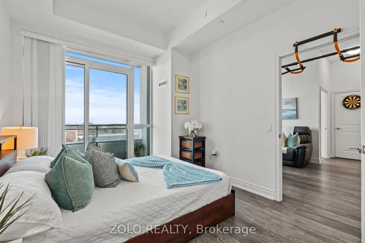 Welcome to Art on Main – one of Milton’s most sought-after boutique condo buildings by Fernbrook Homes. This beautifully appointed 2-bedroom + den suite offers 920+ sq ft of thoughtfully designed living space with soaring 10-ft ceilings and a bright open-concept layout that immediately impresses. Perched on the 6th floor with south-east exposure, enjoy views overlooking Lions Sports Park and the Leisure Centre from your private balcony. The den features sliding doors and generous proportions, ideal as a third bedroom, home office, or guest space. A rare bonus: storage locker conveniently located on the same floor. Also includes underground parking and in-suite laundry. Building amenities include outdoor pool, rooftop deck, gym, party room, guest suites and concierge. Steps to Milton Commons, Leisure Centre, Library, Lions Sports Park and Bishop Reding. GO Station under 1km away. Some balcony images virtually staged.