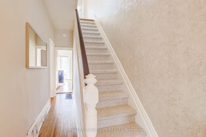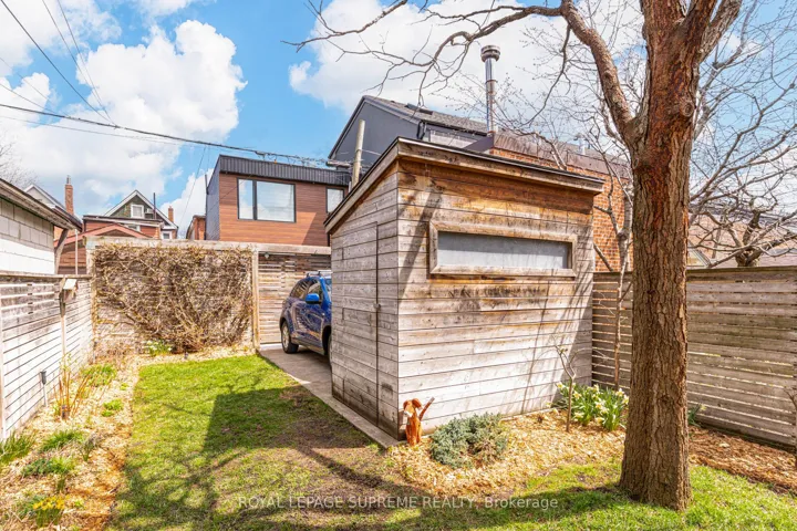 Home Sweet Home! This beautifully maintained semi-detached home sits on a quiet, tree-lined street in the heart of vibrant Dovercourt Village, showcasing standout curb appeal. The inviting porch is an ideal spot for a morning coffee or a peaceful evening unwind while overlooking the lush perennial garden. Soaring ceilings, hardwood floors, and crown moulding reflect the home’s Victorian roots, while large windows and an open, airy layout fill the interior with natural light from front to back. The living and dining areas flow seamlessly, creating an inviting setting for both daily life and effortless entertaining. A main-floor powder room adds a highly sought-after feature rarely found in homes of this era. Thoughtfully planned, the kitchen boasts generous counter space, ample cabinetry, and a dedicated coffee station, along with seating for four. Glass patio doors open fully to the backyard, extending the living area outdoors. Upstairs, three well-proportioned bedrooms include a dreamy primary retreat framed by a picturesque window. The fully renovated bathroom features heated floors, a soaker tub, and a walk-in shower, delivering a refined, functional space. The full basement remains a blank canvas, ready to be customized to suit your needs. Step outside to a private, fully fenced backyard designed for easy outdoor living, with multiple zones for gathering, dining, or simply relaxing. The mature garden creates a natural backdrop for summer hosting, while an irrigation system keeps everything effortlessly maintained. A custom-built shed adds convenient storage for garden tools, bikes, and more. Featuring laneway access and gated rear parking, this lot presents a prime opportunity for a double-car garage or laneway suite. All of this is set within one of the west end’s most walkable and connected neighbourhoods. Just steps to Dufferin Station, cafés, restaurants, parks, schools, and everyday essentials. This is city living at its best!