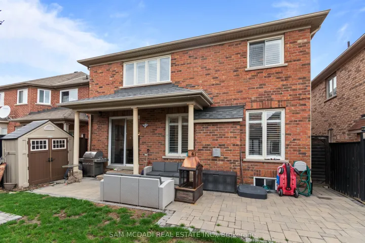 Welcome to 5142 Ancient Stone Ave, a beautifully upgraded family home tucked in the vibrant Churchill Meadows community.With approx 4,250 SF of total living space, this home boats thoughtful upgrades, including a new roof and A/C (2025), security system with cameras, central vacuum system, California shutters throughout, and window security film for added peace of mind. From the moment you arrive, the home makes a strong impression with its interlocking stone front and extended driveway. Step inside to a bright marble foyer that opens into a thoughtfully designed main floor. The layout flows effortlessly from a formal dining space into a warm, inviting living area anchored by a gas fireplace, all enhanced by oversized windows and pot lights throughout. The kitchen is both stylish and functional, featuring Bosch and Kitchen Aid appliances, a gas stove, stone countertops, and a generous island that naturally becomes the heart of the home. A main-floor laundry room with garage access adds everyday convenience. Above, the home continues to impress with a versatile layout offering two primary bedrooms, ideal for multi-generational living or added flexibility. The additional bedrooms are well-proportioned, complemented by upgraded finishes and the convenience of two staircases connecting the levels. The fully finished basement expands your living space with custom built-ins, a large recreation area, and a cold cellar, perfect for storage or entertaining. Whether it’s movie nights, a home office, or a play space, this level adapts to your lifestyle. Step outside to a private backyard designed for enjoyment, complete with interlock stone, a gas BBQ connection, and a custom-built shed with electricity, perfect for hobbies or extra storage. Surrounded by top-rated schools, parks, and everyday essentials, this location offers the perfect balance of convenience and community, with easy access to major highways, shopping, and nearby trails.