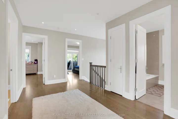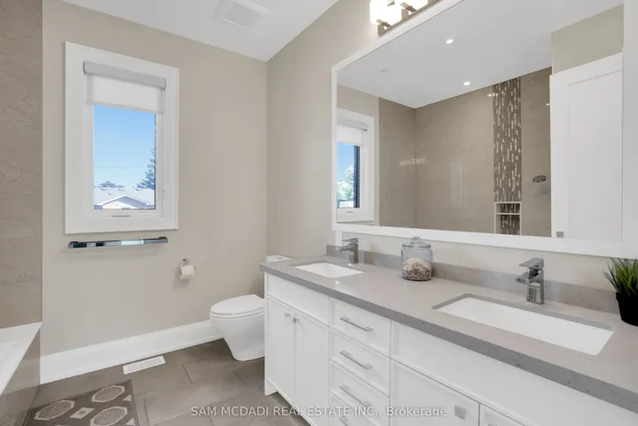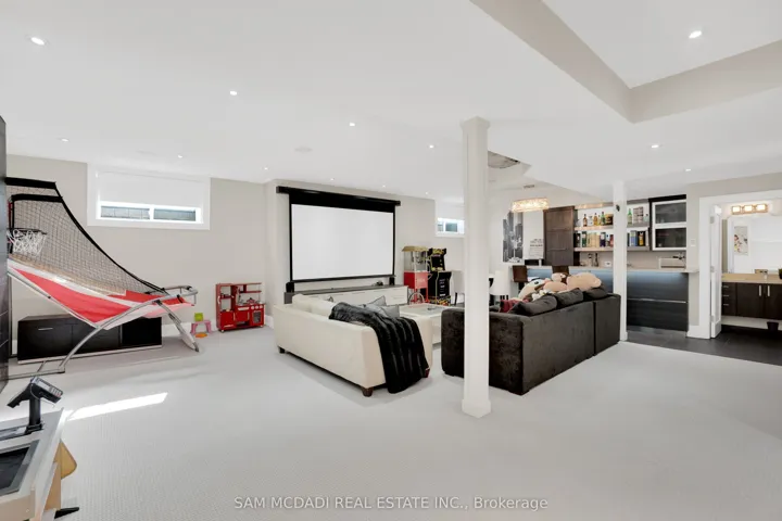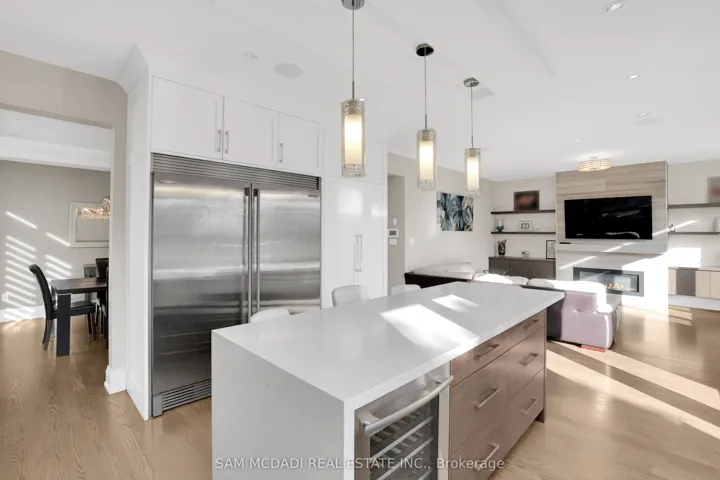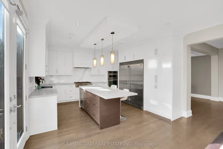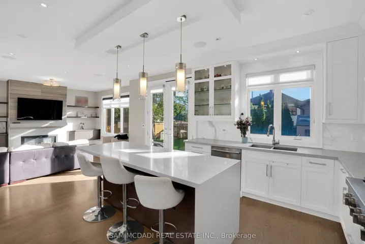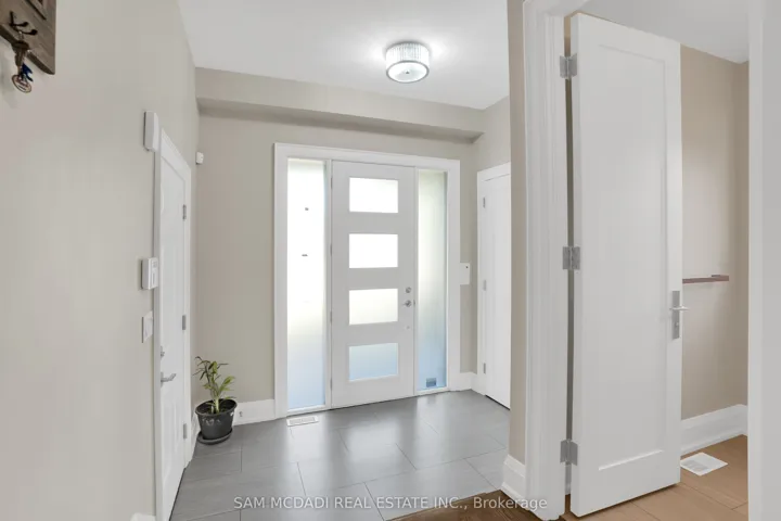 Located in the sought-after Lakeview enclave, 1196 Strathy Ave is a meticulously designed residence offering an approx 4,000 SF of total interior living space, thoughtfully curated with modern finishes. The interior seamlessly blends comfort and sophistication and include 9-foot ceilings, hardwood flooring throughout, custom cabinetry, and built-in speakers on every floor. The open-concept main level delivers effortless flow between principal rooms, anchored by a chef-inspired kitchen featuring quartz countertops and abundant workspace. Overlooking the rear grounds, the kitchen connects beautifully to the living and dining areas and provides a walk-out to a professionally landscaped, fully fenced backyard, creating a natural extension for indoor-outdoor entertaining. The upper level is equally impressive, offering four spacious bedrooms, each designed with both function and refinement in mind. A standout feature is the private balcony walk-out from one of the bedrooms, capturing tranquil treetop views and enhancing the home’s sense of retreat. All upper bathrooms are appointed with electric heated floors, adding an elevated layer of comfort to everyday living. Designed for entertaining and versatility, the fully finished lower level presents an exceptional lifestyle space complete with a home theatre, wet bar, and one of two electric fireplaces found throughout the home. An additional bedroom on this level provides ideal accommodations for a nanny or in-law suite, offering privacy and flexibility for multigenerational living. Surrounded by an array of amenities, this location offers convenient access to Square One Shopping Centre, scenic outdoor escapes such as Jack Darling Memorial Park, and seamless connectivity via Highway 403 and QEW.
