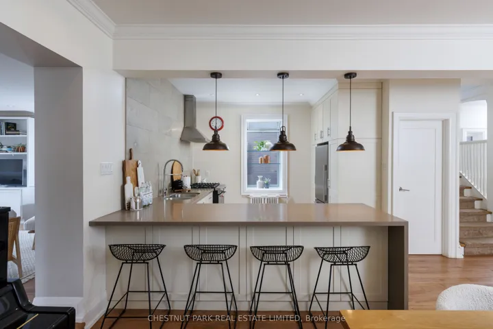 A rare offering on a coveted, tree-lined street in sought-after High Park North, this grand yet welcomingfamily home offers exceptional space and meticulous upkeep. With 2,365 sq ft above grade plus a 1,045sq ft lower level, it provides 3,410 sq ft of total living space.This well-maintained 2-storey home features 4+2 bedrooms and 4 bathrooms, including a coveted mainfloor family room and main floor powder room-rare in the neighbourhood. The additional storey allows fora private third-floor primary retreat. A generous and well-appointed 1-bedroom apartment on the lowerlevel offers flexibility for extended family or income potential, plus a separate lower-level room offeringflexibility as an additional bedroom or hobby space.The open-concept main floor features a custom kitchen with quartz countertops, peninsula seating,stainless steel appliances, and a greenhouse window. The sun-filled living room with wood-burningfireplace flows into a dining area ideal for entertaining. The family room with gas fireplace offers a walkoutto the garden, while a mudroom with built-in storage and heated floors adds convenience.The second floor includes three well-proportioned bedrooms and a renovated spa-inspired bathroom withsoaker tub, glass shower, and double vanity. The third floor is a private primary retreat with a 3-pieceensuite and large closet.Additional highlights include hardwood floors, crown moulding, excellent ceiling height including thebasement, 200-amp service, and updated Bell fibre optics. The 43 x 120 ft lot offers a mutual drive withaccess to a 2-car garage plus one parking space. Landscaped gardens with mature trees provide aprivate, low-maintenance outdoor setting.Ideally located near Runnymede PS, Humberside CI, Ravina Gardens, High Park, Grenadier Pond, Bloor West shops, and transit including the UP Express and Bloor subway