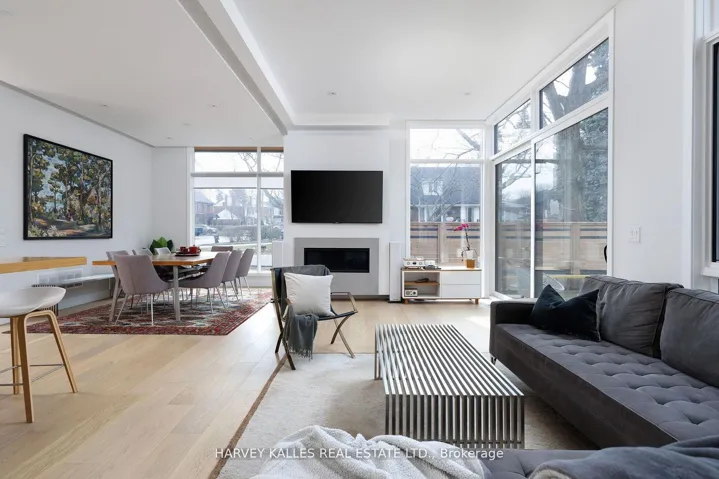 David Small Designs Newly built custom modern home in prime Sunnylea community, nestled within natural canopy and captivating walkways and tree lined streets .. an oasis of calm, peace and quiet mere steps to parks and walking trails, exceptional public and catholic schools and the hustle bustle of Shops on the Kingsway on Bloor West. Preferred 4+1 Bedrooms with 5 Bathrooms crafted in a stunning modern aesthetic designed for the discriminating buyer. 6 car parking with attached 2 car heated garage, fully fenced yard with landscaping, and nearly 5,000 square feet of fully finished living space across 3 levels. Light filled architecture design with multiple corner windows, art gallery style 2nd floor foyer area and generous room sizes throughout. Open concept family room with gas fireplace overlooking modern kitchen with eat in counter top space and formal dining room, with den office and large laundry room completing the main level with finished carpentry and foyer shelving. Lower level features a large multiple purpose recreational room with finished shelving and cabinetry with 5th bedroom featuring walk in closet and ensuite private bath, and enclosed work crafts room. Finished home throughout with exceptional storage design. Designed and built by one of Toronto’s most accomplished builders and a truly beautiful, nuanced design.