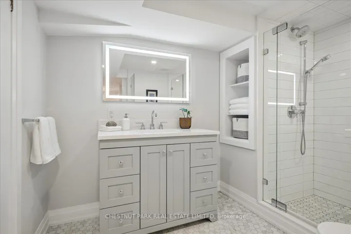 Nestled on a mature, tree-lined street in the heart of Lorne Park, this beautifully updated residence offers a premier lifestyle in one of Mississauga’s most sought-after communities. The location is truly unbeatable, placing you within walking distance of Lorne Park Secondary, Whiteoaks Public School, the local library, and Fairfields Pool. Plus, with Port Credit, Clarkson, and GO Transit just a short drive away, you’re perfectly positioned for both neighbourhood peace and easy commuting.The interior shines with high-end finishes, starting with a 2016 main-floor renovation by Sarah Richardson Design. You can unwind in the sunken living room, anchored by a wood-burning fireplace and custom built-ins, or host gatherings in the dining room, which features a built-in dry bar and French doors that open to the lush backyard. The stylish kitchen boasts Caesarstone countertops and stainless steel appliances, providing seamless access to the garage and powder room. This level also hosts a spacious primary bedroom, a nursery, and a modern four-piece bathroom with plenty of storage.The lower level, fully transformed in 2020, feels bright and expansive thanks to above-grade windows and wood flooring. It’s an entertainer’s dream, featuring a recreation room with a built-in wet bar alongside a versatile flex space ideal for a home office or playroom. Two additional bedrooms and a functional laundry room make this level as practical as it is polished.Step outside into a private backyard oasis, professionally landscaped and fully fenced for ultimate seclusion. The grounds feature flagstone patios, mature plantings like Rhododendrons and Azaleas, and a privacy fence installed in 2024. A charming custom-trimmed pine shed, completed in 2025, adds the perfect finishing touch to the outdoor space. This is a thoughtfully curated home, meticulously maintained and ready for its next chapter in an exceptional neighbourhood.