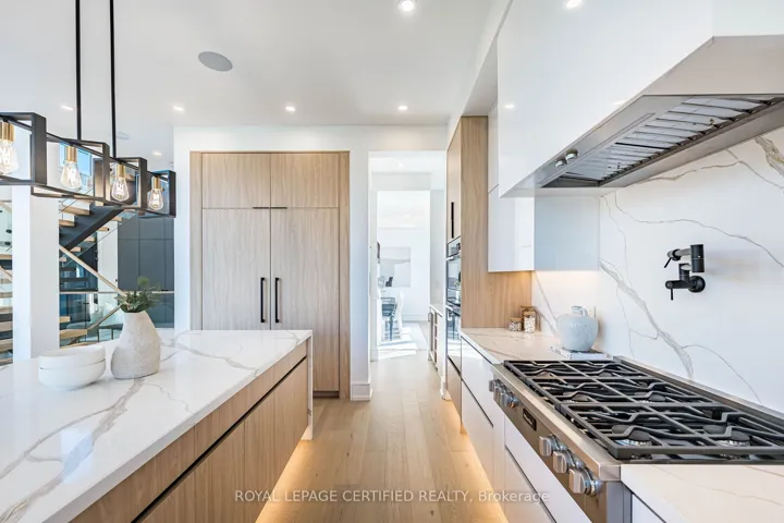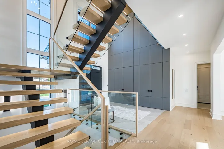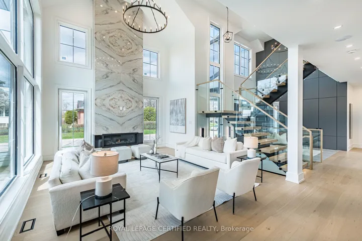 Experience uncompromising luxury in this newly built, architecturally striking residence where every detail has been meticulously curated and no expense has been spared. Designed and built by its owner-an architect-as his primary residence, this 5000 + sqfts of living space custom home reflects exceptional attention to detail and uncompromising quality throughout. From the moment you enter, the level of craftsmanship is immediately evident-featuring a sun- filled main floor office, soaring cathedral ceilings, and dramatic floor-to-ceiling triple- glazed windows and doors that flood the home with natural light. Designed for both elegance and functionality, the heart of the home is a bespoke chef’s kitchen showcasing premium Miele appliances, custom cabinetry, and refined finishes, seamlessly complemented by a secondary kitchen and a fully finished lower level with matching attention to detail. The grand two-storey living space is anchored by a statement fireplace, while smart home integration enhances everyday living with built-in sound, security, and climate systems. This home is rich with high-end features, including heated flooring at the main entrance and in the primary ensuite with Wi-Fi control, an electric vehicle charger in the garage, and thoughtfully designed systems throughout. All bedrooms offer private ensuites with custom glass showers and premium fixtures, while the primary retreat provides a spa-like experience with elevated finishes and comfort. The lower level continues to impress with oversized windows allowing abundant daylight, along with a custom bar, home theatre, gym, and additional living space. It also includes a convenient secondary (backup) laundry and provisions for a full cooking kitchen, offering excellent flexibility for extended family or future use. A second-floor laundry adds everyday convenience and functionality. ***