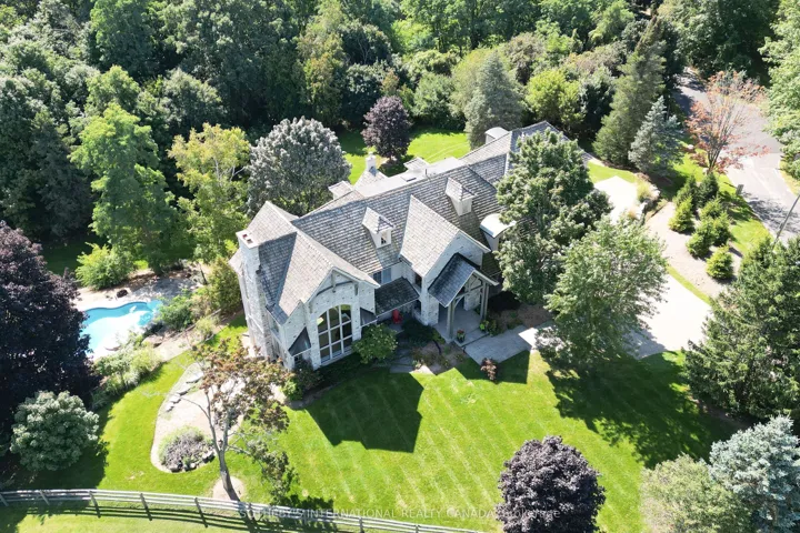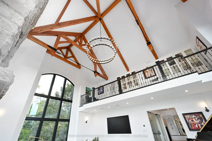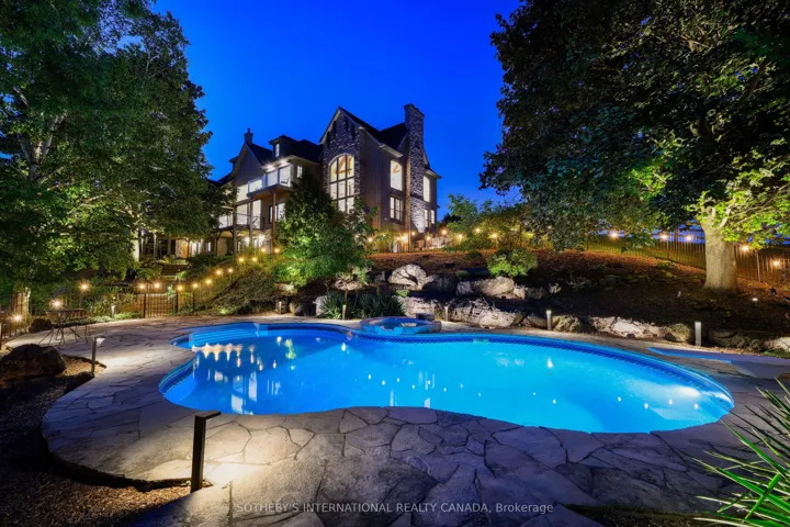 **A true architectural tour de force!** This Burlington countryside estate redefines luxury living – where timeless craftsmanship meets breathtaking modern design. Set amid the rolling hills of rural Burlington, this beyond-spectacular residence blends rustic artistry with sophisticated refinement. Reimagined by Baeumler Quality Construction, the home features Mortise and Tenon joinery throughout, including the major framing – a rare and costly technique mastered by only a select few tradespeople. This traditional method delivers remarkable strength, precision, and enduring beauty, visible in every beam and joint. Inside, an airy Scandinavian-inspired interior unfolds beneath 30-foot vaulted ceilings, with exposed wood beams, expansive glass walls and doors, and a striking Indiana Limestone fireplace mantel that anchors the great room in warmth and grandeur. Luxury abounds in every detail: Richard & Levesque custom cabinetry, gourmet appliances, designer finishes, heated floors, a home theatre, two laundry rooms, and a walk-out lower level. Enhanced with Smart Home automation and a Generac 24 k W natural gas backup generator, this home offers seamless comfort and peace of mind. Outdoors, discover a private backyard sanctuary with a sprawling entertaining deck, meticulous landscaping, a pool, pond, and a floodlit hill for tobogganing. Enjoy unobstructed panoramic views of the Toronto skyline, Niagara Escarpment, and Rattlesnake Point – a breathtaking canvas. Nestled in prestigious Kilbride, this remarkable property offers the tranquility of country living with quick city access – just 45 minutes to Toronto and minutes from Lowville Golf Club. North Burlington Tennis Club, and renowned hiking trails. A residence of unparalleled artistry and integrity, this estate stands as a true masterpiece, not simply built, but artfully created.