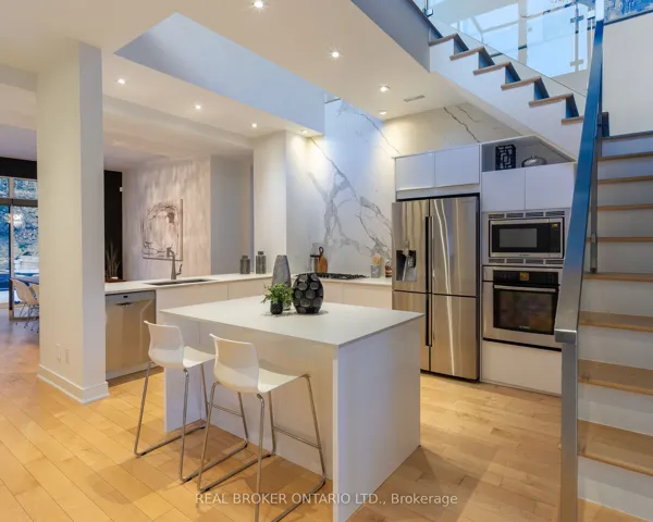 Architecturally significant and thoughtfully designed, this 4,000+ sq ft total sqft contemporary residence by David Peterson Architect Inc. offers a rare blend of modern design, wellness living, and urban convenience. Set on South Kingsway, just moments from Bloor West Village, this home is perfectly positioned for those seeking immediate access to the city while enjoying a private, nature-inspired setting. Inside, a dramatic garden atrium anchors the home, filling the space with natural light and creating a seamless connection to the surrounding landscape. Refined finishes including natural maple and Statuario surfaces elevate the interior, while expansive windows frame picturesque, seasonal woodland views. Designed for both relaxation and lifestyle, the home features a custom sauna and swim spa-bringing a spa-like experience into your everyday routine. Offering 3+1 bedrooms and 4 baths, and located within the highly sought-after Swansea P.S. and Humberside Collegiate district. A rare opportunity to own a design-driven home that balances architecture, wellness, and connectivity in one exceptional offering.