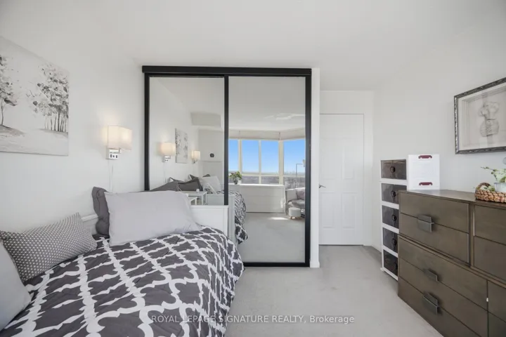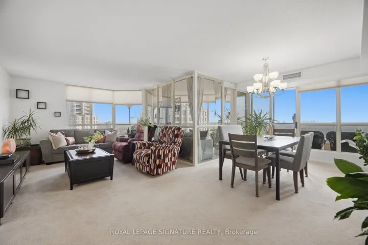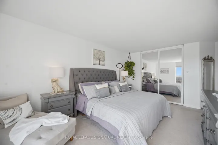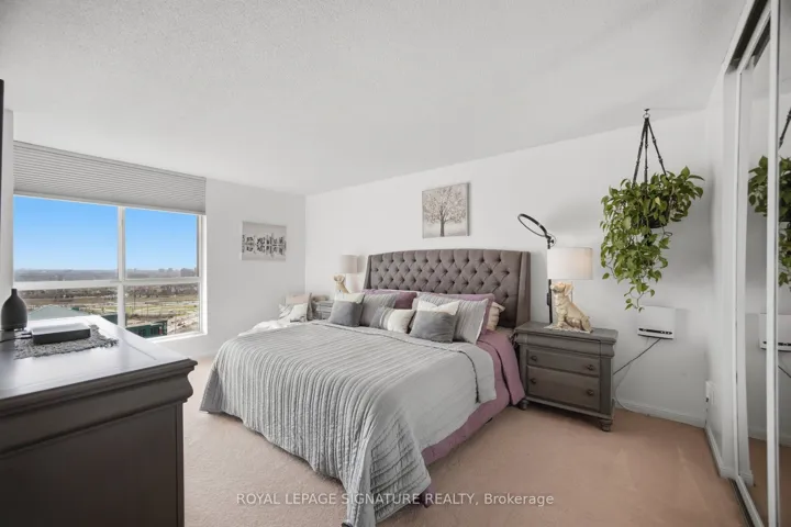 Bright, spacious, and beautifully maintained, this stunning sub-penthouse condo offers a warm and cheerful atmosphere with spectacular sunrise views that fill the home with natural light every morning. Featuring a generous layout, the spacious living room and formal dining area easily accommodate a table for 8+ guests, perfect for entertaining family and friends. The large kitchen offers a breakfast area, abundant cabinetry, and plenty of counter space for everyday living. The separate den is a full room and provides endless flexibility as a home office, guest bedroom, or third sleeping area. The spacious primary bedroom includes a walk-in closet and a private 4-piece ensuite with a separate shower, while the second bedroom is also generously sized. Enjoy the convenience of 2 side-by-side parking spaces and a spacious locker. Maintenance fees include heat, air conditioning, hydro, water, cable TV, and internet for true worry-free living. Residents enjoy exceptional resort-style amenities, including an indoor pool, fitness centre, billiards room, tennis courts, beautifully manicured grounds, gardens, party/entertainment rooms, sauna, guest parking, and 24-hour security. Ideally located close to shopping, restaurants, transit, parks, and all everyday amenities, with quick access to major highways for an easy commute. A rare opportunity to own a bright, happy home with space, comfort, and unbeatable value.