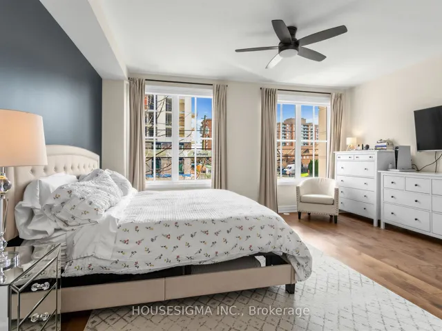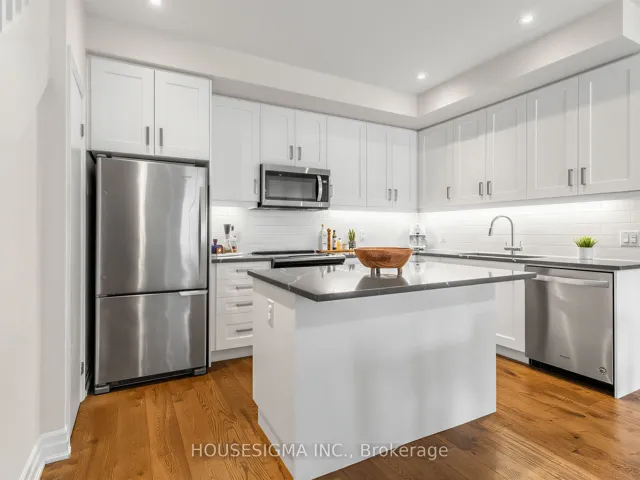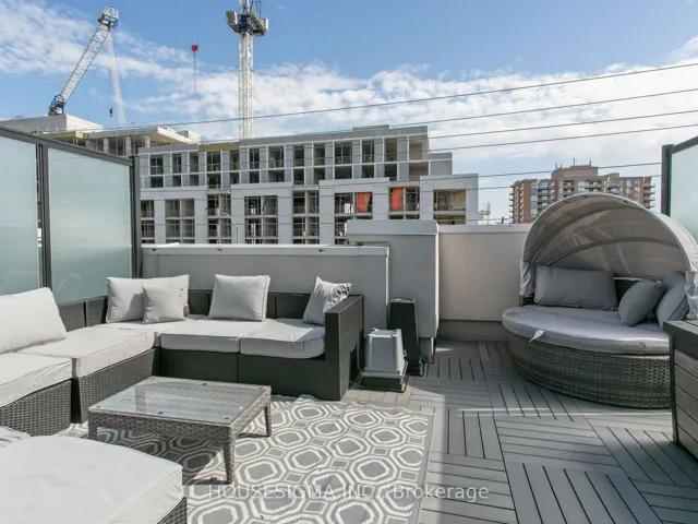 Step into a truly exceptional executive townhouse, meticulously upgraded with over $100,000 in premium finishes and design details from the builder. This rare offering features 3 spacious bedrooms plus a versatile den, along with 3 beautifully appointed bathrooms. Designed to impress, the home showcases stunning wide plank oak hardwood flooring throughout, soaring ceilings, and a completely carpet free interior for a clean, modern aesthetic. The main floor boasts a highly sought after open concept layout, enhanced by elegant pot lights, sleek quartz countertops, and a striking custom feature wall, creating an unforgettable focal point. Enjoy generously sized bedrooms, the convenience of a bathroom on every level, and the rarity of two parking spaces complemented by a storage locker. Unwind or entertain on your expansive rooftop terrace spanning nearly 350 sq ft, complete with a gas line hookup. Perfectly positioned, this sought after development places you just moments from Lakeshore, scenic parks, top rated schools, major highways, the GO Train, and a vibrant selection of restaurants, offering the ideal blend of lifestyle, convenience, and connectivity. This is refined suburban living at its finest, an extraordinary home that must be experienced to be fully appreciated.