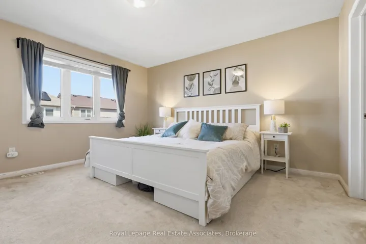 TWO-STOREY townhouse in Milton’s Willmott neighbourhood with a fully FINISHED BASEMENT and low-maintenance backyard with synthetic grass (relax more, cut grass less!). Imagine moving right in and entertaining around your kitchen peninsula with white quartz counters and stainless steel appliances. Your guests will feel comfortable with the open-concept layout, hardwood floors, main floor powder room, and easy access to your backyard patio with gazebo. This property is ready with extra space. The fully finished basement (2023) features a large window, potlights, and extra storage. Upstairs, there are three spacious bedrooms, a main 4-piece bath, and a 3-piece ensuite – giving your family the space to start and end your days easily . Minutes to Milton hospital, schools, and steps to Leiterman Park – this townhouse is perfect for buyers looking a move-in ready home in family friendly Milton..