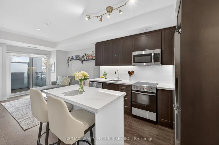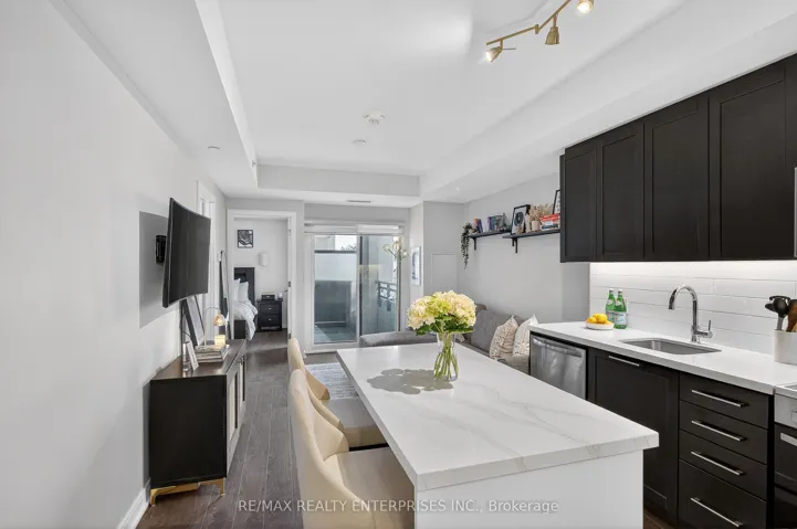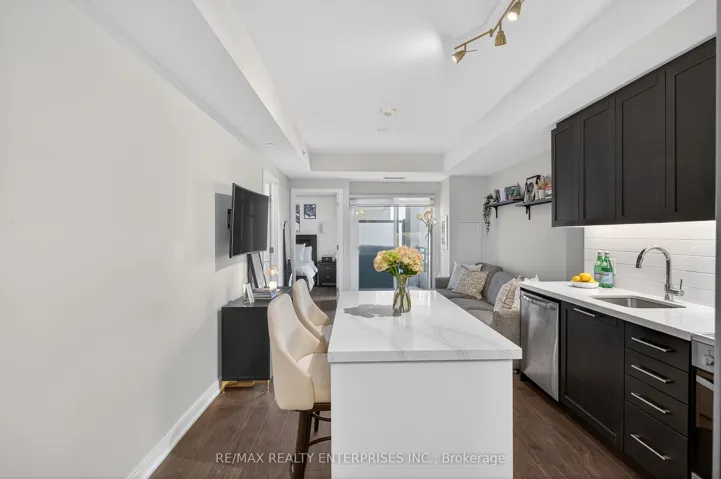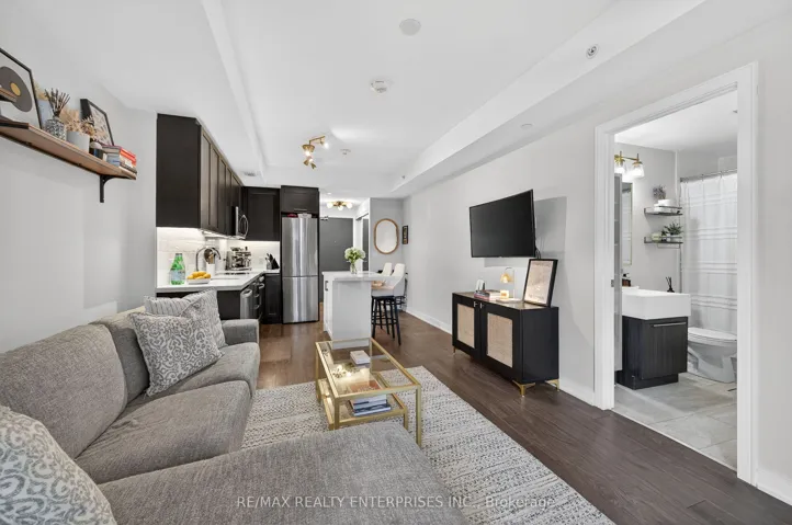 Welcome to Backyard Condos in the heart of South Etobicoke. This beautifully designed 1 bedroom suite offers approximately 550 sq ft of bright, modern living space plus a spacious balcony perfect for relaxing in the evening. Thoughtfully designed with soaring 9 foot ceilings and wide plank flooring throughout, the open concept layout creates a stylish and functional space ideal for both everyday living and entertaining. The upgraded modern kitchen flows seamlessly into the living and dining area, creating a comfortable and inviting space filled with natural light. The spacious primary bedroom features a double closet and offers plenty of room for a large armoire or dresser, providing excellent storage and flexibility. This well designed suite also includes the convenience of ensuite laundry, one parking space and a locker. Located in a highly desirable West Toronto neighbourhood, this boutique building offers the perfect balance of urban convenience and natural surroundings. Just steps to the Humber River trails and within walking distance to the lake, Humber Bay and the vibrant Marine Parade area. Enjoy easy access to local cafés, restaurants and shops along The Queensway, Park Lawn and Lakeshore. Commuting is effortless with TTC nearby and quick access to the Gardiner Expressway, Lakeshore and downtown Toronto just minutes away. Residents enjoy exceptional building amenities including concierge service, a fully equipped fitness centre, rooftop terrace with fire pit and lounge areas, guest suite, pet spa and visitor parking. A fantastic opportunity for first time buyers, investors or those looking to downsize without compromise in one of South Etobicoke’s most exciting communities.