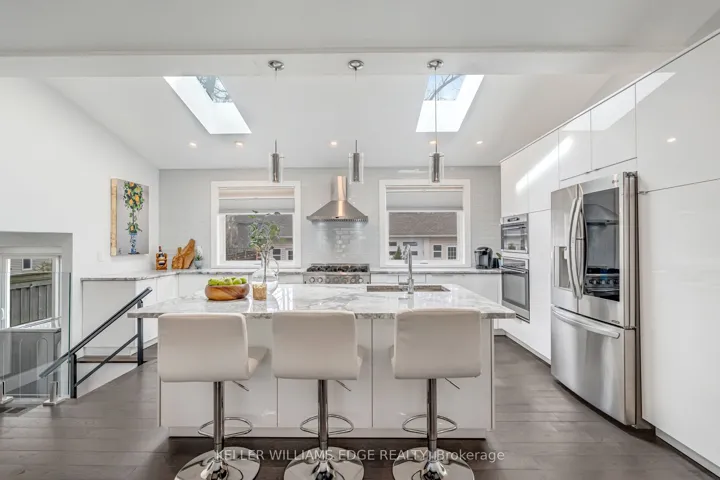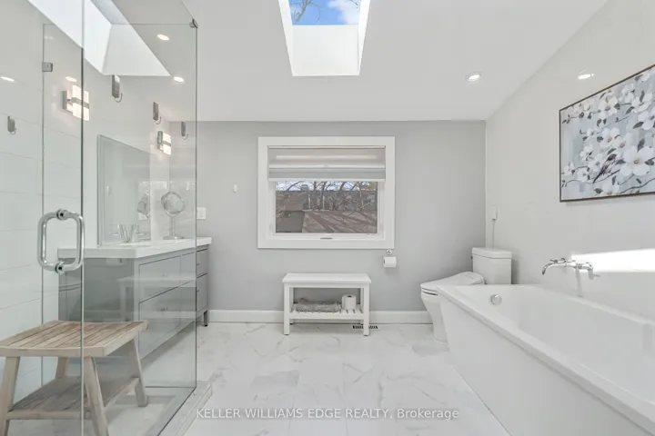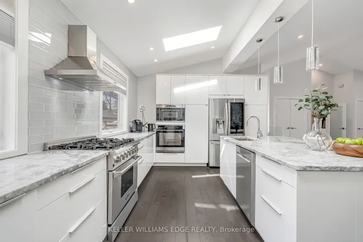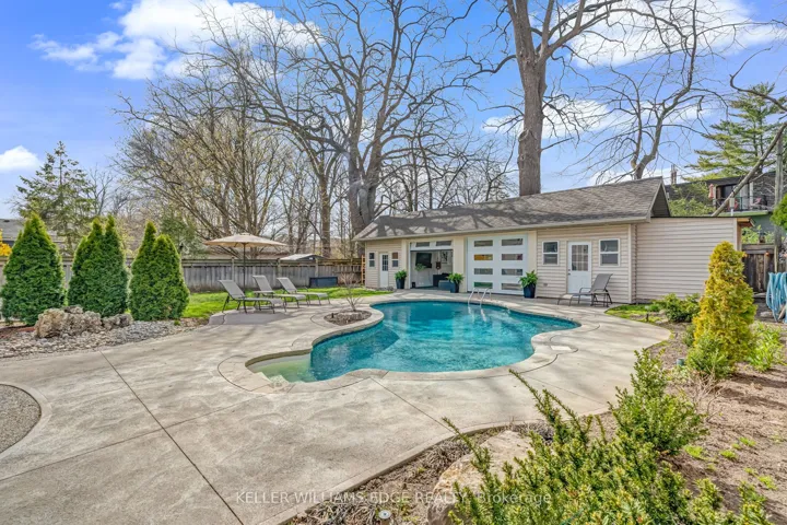 There’s a reason people fight to get onto Deyncourt Drive – and this bungaloft is exactly why. Extensively renovated in 2018 on a stunning 65 x 140 ft lot in Burlington’s coveted Downtown Central neighbourhood, this is the kind of home where the layout just makes sense, the finishes feel right, and the backyard makes you forget the rest of the world exists. Step inside and the vaulted ceiling opens things up immediately. A floor-to-ceiling stone feature wall with gas fireplace anchors the living and dining space, hardwood floors run throughout, and the kitchen delivers everything a family or entertainer could want: stainless built-in appliances, chef’s gas range, massive island, and endless counter space – all bathed in natural light from skylights above. The floorplan is genuinely thoughtful – two bedrooms and a 3-piece bath tucked quietly along their own private wing on the main level, while a half-flight up, the primary suite feels like a world apart. Walk-through closet, freestanding tub, glass shower, skylit and serene, overlooking the backyard. Main floor laundry, two sets of sliding doors on opposite sides of the home – every detail considered. The backyard is the closer. Saltwater pool just steps from an infrared sauna, full bath, and a 419 sq ft heated pool house – permitted and winterized with a year-round living room and workshop. Whether it becomes a she-shed, man cave, or studio, it’s a space people don’t expect to find. A fully finished basement adds over 1,275 sq ft more for whatever life calls for. Steps to the vibrant core – downtown Burlington, the waterfront, top-rated schools, and Burlington GO. Homes like this on streets like this don’t come around often.