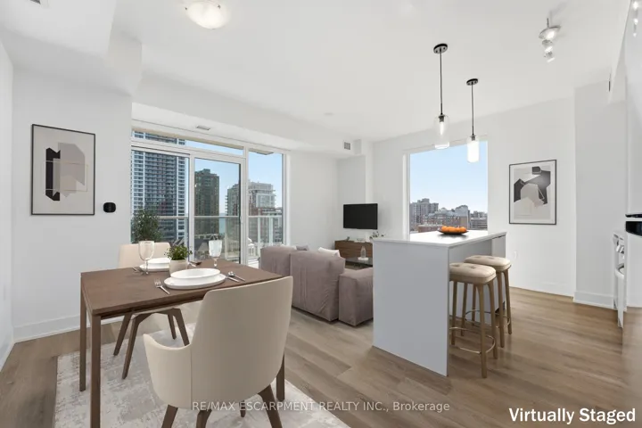 Welcome to 2088 James Street. The brand new Martha James Condominium by Mattamy Homes where modern design meets an unbeatable Burlington lifestyle. Perched on the 9th floor, this bright and spacious 2 bed, 2 bath, plus den suite offers 987 sq ft of thoughtfully designed living space. Enjoy a sleek, contemporary kitchen complete with stylish finishes, perfect for both living and entertaining. The open-concept layout is flooded with natural light thanks to its desirable south facing exposure, showcasing stunning lake views. The versatile den provides the ideal space for a home office or reading nook, while the in-suite laundry adds everyday convenience. This unit also includes an oversized parking space paired with a storage locker located directly beside it exceptionally convenient and close to both the stairs and elevator. Residents are welcomed by a stunning lobby with concierge service, and have access to premium amenities including a fully equipped gym with yoga studio, an elegant party room for hosting gatherings, roof top patio, and dog washing station. Situated just steps from downtown Burlington, this unit is within walking distance to the lake, vibrant restaurants, boutique shopping, and more. This is a rare opportunity to enjoy a sophisticated, low-maintenance lifestyle in one of the city’s most sought-after locations. A true elevated condo living experience.