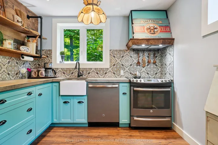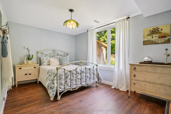 Escape the City; Embrace Country Living. Sitting proudly on a peaceful country road in East Speyside, just minutes north of Milton, this beautifully renovated country retreat invites you to slow down and enjoy the good life. Set on a pristine, park-like acre backing onto a serene ravine, this 3-bedroom raised bungalow is a gardeners dream and a hobbyists haven. Step inside to a fully renovated open-concept main floor with a sun-filled kitchen, vaulted ceilings, and a cozy propane fireplace in the living room. Enjoy sweeping views of lush perennial gardens from every window. The walkout lower level adds incredible versatility with a second kitchen, rec room warmed by a wood fireplace, a spacious laundry/sewing room, guest bedroom, and 3-piece bath. Outside, you’ll fall in love with the maple forest, tranquil trails, fire pit, and storybook bridge over a gentle stream. A breathtaking wisteria-covered pergola creates the perfect backdrop for summer evenings, while a workshop is ready for your creative projects. With great schools, nearby hiking, and an easy commute to the city, this is the countryside escape you’ve been waiting for. Properties like this are rarely offered don’t miss your chance to make it yours.
