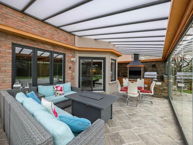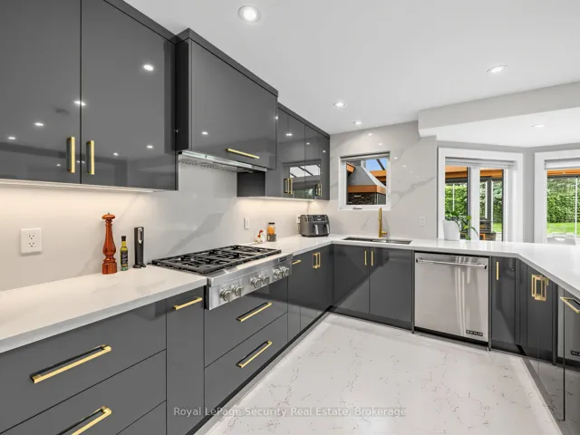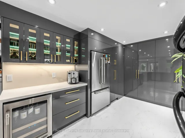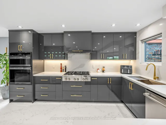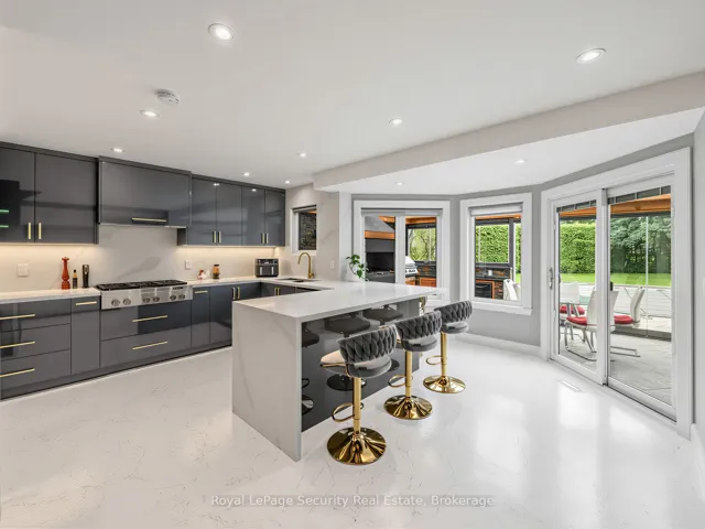 Stunning Brampton residence set on a generous lot in a park-like setting within a mature, family-friendly neighborhood. This home has been extensively redesigned and renovated with exceptional materials and craftsmanship throughout. A beautifully reimagined foyer welcomes you with a floor-to-ceiling custom feature wall, complete with built-in seating and a concealed closet. From here, sweeping sightlines reveal the main floor’s open-concept design, highlighted by a mono-stringer red oak staircase with frameless glass railings. A wall of windows floods the space with natural light and frames views of the private backyard oasis. The chef’s kitchen is equipped with top-of-the-line appliances, gleaming quartz countertops and backsplash, and abundant storage within floor-to-ceiling custom cabinetry. A large island anchors the space, perfect for both everyday living and entertaining. The kitchen also offers direct access to a sunroom/three-season entertaining area and the beautifully treed backyard with in-ground pool! Upstairs features four generously sized bedrooms. The primary suite boasts a wall-to-wall walk-in closet with custom floor-to-ceiling cabinetry. The finished basement is designed for entertaining, featuring a fully climate-controlled wine room, a bar with sink, and a full audio visual entertainment wall. Ideally located close to all amenities, including excellent shops, restaurants, parks (with direct access from the backyard), top-rated schools, public transit, and major highways. This is a home that must be experienced in person to be fully appreciated. *See attachment for full list of improvements and features.