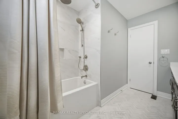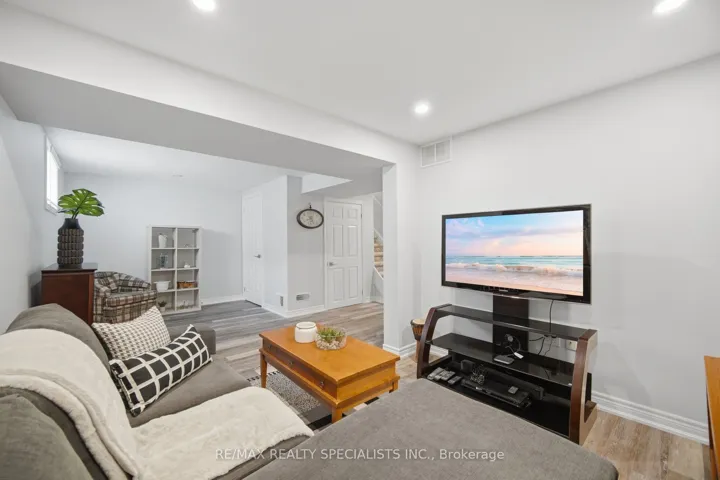 In a sought-after Meadowvale neighbourhood, this beautifully updated semi-detached home with almost 1500 Sq Ft, offers a warm layout that works beautifully for everyday family living. From the welcoming foyer with French laid ceramic flooring to the bright main living spaces, the home blends comfort and style with smooth ceilings, pot lights, and tasteful finishes throughout. The updated kitchen is both attractive and functional, anchored by granite counters, ceramic subway tile backsplash, glass display cabinetry, and a spacious family-sized eat-in area. A large front window fills the breakfast area with natural light, while the separate dining room adds elegance with new engineered hardwood floors, crown moulding and a walkout to the backyard. The living room is equally inviting, with new engineered hardwood flooring and a large rear window overlooking the patio. Upstairs, the bedrooms offer warmth and character with parquet flooring, generous natural light, and a comfortable, well-kept feel. The renovated main bath is a standout, finished with double sinks, quartz counters, herringbone laid porcelain tile floors, and a deep modern tub with rainfall shower, handheld, niche, and elevated designer detail. The finished basement extends the living space in all the right ways, with a spacious rec room, a separate gym or den, and a beautifully finished laundry and three-piece bath with heated porcelain tile floors, glass shower, quartz folding counter and stylish modern finishes. A separate workroom adds extra flexibility for storage, hobbies, or practical day-to-day use. Outside, the interlock patio and garden beds create a private setting to relax or entertain, while the front landscaping and lighting add to the home’s strong curb appeal. All of this is set within walking distance to schools, shopping, scenic walking trails, Glen Eden Park, and Meadowvale Community Centre, with quick access to Highways 401, 403, and 410 and Meadowvale GO Station only five minutes away.