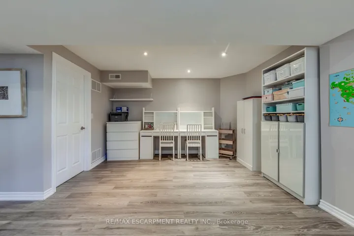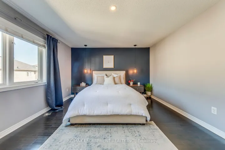 Welcome to this beautifully upgraded semi-detached home in Burlington’s highly sought-after Alton Village-offering a perfect blend of modern style, functional layout, and move-in-ready comfort.Step inside to a bright and inviting main floor featuring 9-ft ceilings, rich hardwood flooring, and bright pot lighting. The open-concept living and dining area flows seamlessly into a spacious family room, creating an ideal setting for both everyday living and entertaining. The renovated kitchen (2020) is a standout, showcasing white cabinetry, granite countertops, modern backsplash, and expanded prep space, with a cozy breakfast area overlooking the backyard. Upstairs, you will find three generously sized bedrooms, including a spacious primary retreat complete with a walk-in closet with custom built-in cabinetry and private ensuite. Two additional bedrooms share a well-appointed main bath, while the convenient second-floor laundry room adds everyday practicality.The fully finished basement (freshly painted in 2026) offers excellent additional living space, including a large rec room, dedicated office (or potential 4th bedroom), and ample storage-perfect for growing families or those working from home.Exterior features include interlock landscaping in the front and backyard, a large low-maintenance yard, and a freshly stained deck (2025), ideal for outdoor entertaining.Additional upgrades include: solid oak staircase, upgraded bathroom vanities with granite counters, pot lights (2019), main floor repaint (2024), smart Ecobee thermostat, and updated fixtures throughout.Located close to top-rated schools, parks, shopping, and all amenities, this home offers exceptional value in one of Burlington’s most desirable family-friendly communities.