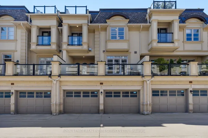 Location and luxury converge in central Oakville’s prestigious Royal Oakville Club, where this exceptional Fernbrook-built designer townhome showcases sophisticated living space, complete with a private elevator, three walkouts, and an expansive rooftop terrace ideal for upscale entertaining. Superior craftsmanship is evident throughout, with hand-scraped hardwood flooring, 9′ and 10′ ceilings, deep baseboards, an elegant oak staircase with iron pickets, pot lighting, designer tiles, and stone countertops. The main level offers grand principal rooms, including an oversized formal living/dining room and an impressive family room that share a striking two-sided gas fireplace. Indulge in the chef-inspired kitchen featuring custom two-tone cabinetry with under-cabinet lighting, premium Sub-Zero and Wolf appliances, quartz counters, and a large island. The bright breakfast room opens to a partially covered terrace with composite wood flooring for effortless indoor-outdoor living. Upstairs comprises, three beautiful bedrooms, two full bathrooms, and a convenient laundry room. The luxurious primary retreat offers a private balcony, oversized walk-in closet, and spa-like 5-piece ensuite with freestanding soaker tub and a glass shower. The versatile ground level offers a fourth bedroom,new broadloom, wet bar, full 4-piece bathroom, and mudroom with inside access to the double garage. Enjoy sun-filled days and starlit evenings on the private rooftop terrace, all within walking distance to Lake Ontario, downtown Oakville, fine dining, cafés, and boutique shopping-an unparalleled blend of elegance, convenience, and lifestyle.