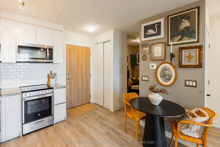 Welcome to the Keeley. A rarely offered 1+1 bedroom, 1 bathroom suite with parking and locker, featuring a unique and versatile layout perfect for first-time buyers, professionals, investors, or downsizers alike. This bright, North facing suite offers an efficient, thoughtfully designed layout that feels larger than expected. Tastefully designed and move-in ready. Enjoy nature at your doorstep with direct access to ravine trails, scenic hiking and biking routes connecting Downsview Park to York University, plus a nearby dog park ideal for outdoor enthusiasts. Conveniently located just minutes to Downsview and Wilson Subway Stations, with easy access to public transit, Yorkdale Mall (10 minutes) and Pearson International Airport (15 minutes). Everyday essentials are close by, including No Frills, Metro, Shops, Restaurants, and Humber River Hospital, making this location highly desirable for students, professionals, and commuters. The Keeley offers an impressive collection of amenities, including a grand lobby with 24-hour concierge, tranquil courtyard, 7th-floor Sky Yard with panoramic views, fitness centre, library, pet wash station and more. A rarely available suite in a prime location, not to be missed!