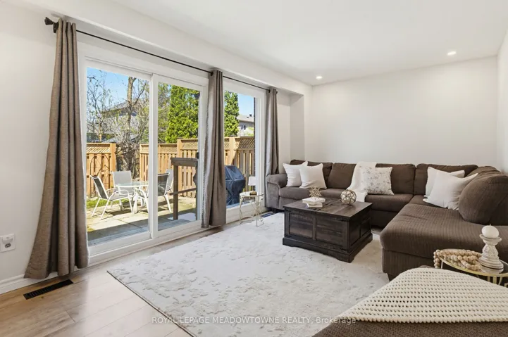 Welcome Home…this 3-bedroom 3 bath family home is in Sought after Bronte Meadows, and is within walking distance to excellent schools, shopping and entertainment. The main floor has a rare door to the garage, and a 2-pc bathroom for your convenience. The sun filled family room is massive with oversized patio door and window for all your family gatherings and leads to a large very private backyard nestled among trees and greenspace in a very quiet area of the complex. The timeless kitchen has lots of cupboards and space for storage in nook, while the dining area is waiting for family dinnertime. Upper-level master bedroom offers a 2-pc bathroom, while up a few stairs the spacious bedrooms share a 3 pc bathroom. Both have been recently renovated. The finished basement area is versatile to accommodate a playroom, office, TV room, gym or man cave. Laundry and lots of crawl space storage, also on this level. The added features of this family home include freshly painted main level, renovated bathrooms, new electrical, newer kitchen appliances carpet free throughout and addition of pot lights. You will love this family friendly complex where new friends are waiting.