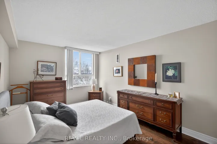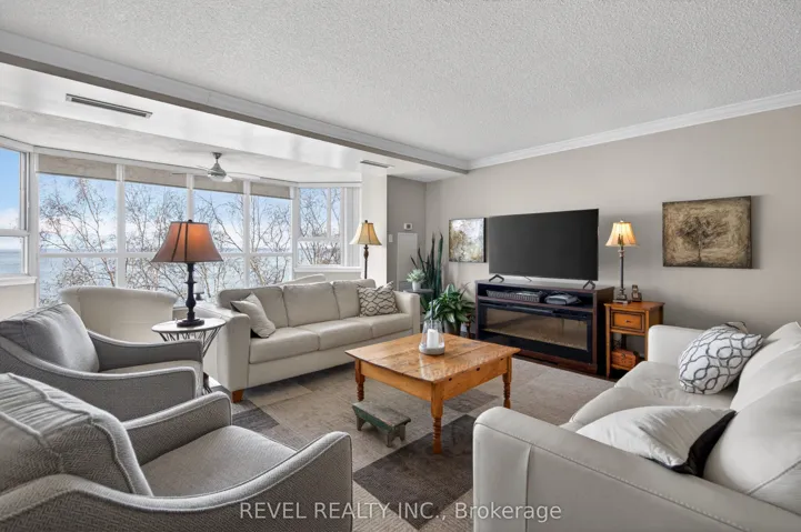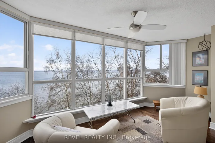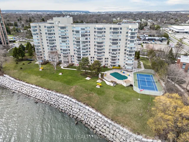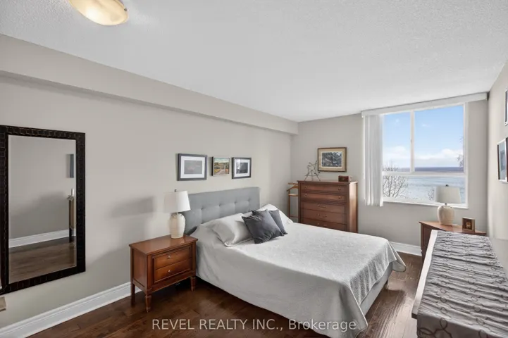 Welcome to Royal Vista! Stunning lakefront living with fantastic views. This gorgeous and spacious unit boasts top to bottom renovations showcasing the perfect location overlooking Lake Ontario.Upon entry you’ll be greeted by a beautiful open concept living room/dining room complete with additional sitting space in front of the panoramic windows making the massive living space bright and inviting, perfect for entertaining guests or getting lost in the gorgeous views.A fully updated kitchen including newer stainless steel appliances, stone counters with a tile backsplash and clean cabinetry add to the warmth and appeal.The generous master bedroom includes an updated en suite bathroom with subway tile around the bathtub, new vanity and flooring. A second spacious bedroom plus additional bathroom with glass shower provide even more comfort and living space.Carpet free, with luxurious hand scraped wood flooring, new trim, in suite laundry and loads of closet and storage space make this unit one of a kind.Royal Vista also includes top notch amenities including a party room with a full kitchen, a full gym along with a dry sauna. Once the weather warms there’s also a large outdoor pool a tennis court which can also be used for pickleball.Units in this building don’t often come up, especially ones with this view and attention to detail. Check out this unique, exquisite place before it’s gone!