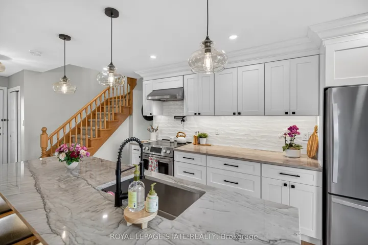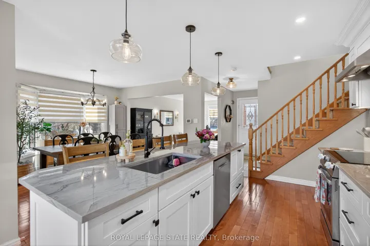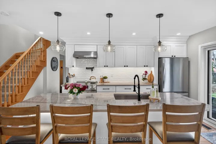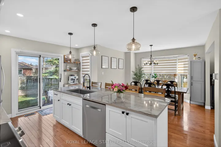 Welcome to this inviting family home offering 1,523 sq ft above grade plus a fully fin bsmnt, set on a pie-shaped lot. With 3 bdrms & 2.5 baths, this home offers an exceptional blend of comfort, function & lifestyle; ideal for growing families seeking both space and convenience. Set on a quiet, dead-end court, the home enjoys a serene, private setting with a spacious yard, along with a 1.5-car garage & 4 driveway spaces, providing ample parking for busy households and guests. Inside, enjoy a bright, open-concept main flr designed for everyday living & entertaining. The renovated kitch (2022) is the heart of the home, seamlessly flowing into the bright front living rm, anchored by large windows, and into the dining area, creating an ideal space for gatherings. The kitch is beautifully appointed with white cab, pot lighting, S/S app (fridge ’22, dishwasher ’22, stove ’24), stunning quartzite countertops & island, a stylish backsplash & a convenient pot filler by the stove. A renovated 2pc bath (2022) & a cozy family rm with a charming wood-burning FP complete the main lvl. Upstairs feat 3 well-sized bdrms, including a spacious primary retreat feat a 4pc ensuite with a shower/tub combo, along with an updated & stylish 5pc main bath (2025) with a double vanity & shower/tub combo designed for busy family living. The fully fin bsmnt extends the living space with a large rec rm, a separate rm currently used as a home gym & a generous laundry/storage area with stacked washer & dryer (2022). Step outside to the expansive pie-shaped backyard offering both green space & patio, perfect for kids, pets & summer entertaining. Significant mechanical upd provide peace of mind, incl furnace (2025), hot water tank (2025), A/C unit (2026), windows (2026) & more. Ideally located in Burlington’s sought-after Maple neighbourhood, just minutes to Mapleview Shopping Centre, Joseph Brant Hospital, downtown & the Burlington Waterfront; close to parks, shopping, dining & commuter routes.