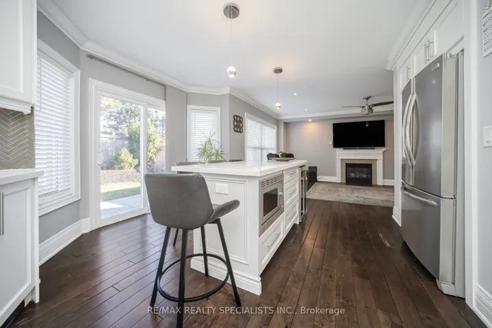 Welcome to this beautifully upgraded, all-brick detached home situated on a premium 55-foot lot, offering a double-car garage and an extended four-car driveway. From the moment you arrive, you’ll appreciate the curb appeal, exterior pot lights, and fully fenced backyard with no neighbours behind-creating a private outdoor retreat complete with a spacious patio, perfect for BBQs and entertaining. Step inside and feel instantly at home with gleaming hardwood floors, abundant pot lights, and a bright, sun-filled layout throughout. The main floor features formal living and dining areas, along with a cozy family room highlighted by a gas fireplace-ideal for relaxing evenings. The fully renovated kitchen is a true showstopper, showcasing luxurious finishes, stainless steel appliances, granite countertops, stylish backsplash, and a large centre island with built-in microwave and wine fridge. Ample counter and cupboard space make this kitchen as functional as it is elegant. An elegant oak staircase with iron pickets leads you to the upper level, where you’ll find five generously sized bedrooms. The spacious primary retreat offers double closets and a spa-inspired 5-piece ensuite complete with double sinks. The main bathroom on the second floor is fully renovated, and the thoughtfully upgraded laundry room with built-in counter adds everyday convenience. Filled with natural light and meticulously maintained, this neat and tidy home offers exceptional space for growing families. Ideally located close to plazas, top-rated schools, parks, highways, and all essential amenities-this is a rare opportunity to own a truly move-in-ready home that combines comfort, style, and functionality