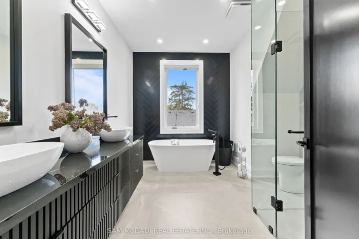 Welcome to 107 Vista Blvd, a custom-built modern residence offering over 5,100 SF of meticulously crafted living space in a highly sought-after Streetsville neighbourhood. Designed with uncompromising attention to detail and premium finishes throughout, every detail captivates from the onset, setting the tone for refined modern living. The open-concept main level features oversized 4×4 porcelain tile and engineered hardwood flooring by Vidar, with expansive windows that fill the space with natural light. The gourmet kitchen is a chef’s dream, complete with a butler’s servery and top-of-the-line Thermador appliances, sleek cabinetry, and a stunning 12mm porcelain waterfall island that seamlessly flows into the dining and living areas, offering walkout access to a covered deck, perfect for indoor-outdoor entertaining. Above, all bedrooms are thoughtfully designed with vaulted ceilings, generous closets, and direct access to ensuites or semi-ensuite baths, creating a private retreat feel throughout. The primary suite offers a spa-like ensuite with quartz finishes and heated floors, while skylights on the upper level further enhance the bright, airy ambiance. Every bathroom in the home features radiant heated floors for added comfort. The fully finished lower level is a standout, featuring radiant in-floor heating, Parlux LVP flooring on DMX underlayment, a full secondary kitchen, and expansive open-concept space, ideal for extended family living, a nanny or in-law suite, or the ultimate entertainment zone with potential for a home theatre, gym, or games area. Additional highlights include built-in Bluetooth speakers with Apple Air Play, multiple electric fireplaces, and a heat pump system for improved efficiency. The private backyard is future-ready with rough-ins for water, drainage, and power for a potential cabana. Conveniently located near top-rated schools, parks, major highways, and just minutes to Credit Valley Hospital, Erin Mills Shopping Centre and more.