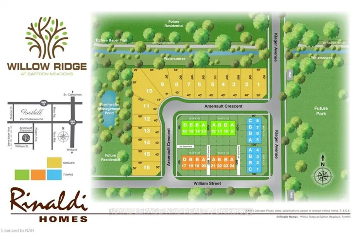 Listing Price includes Government Enhanced HST Rebate. Rinaldi Homes is proud to present the Townhouse Collection @ Willow Ridge. Welcome to 186 Klager Ave a breathtaking 2005 sq ft freehold corner unit townhome. As soon as you finish admiring the stunning modern architecture finished in brick & stucco step inside to enjoy the incredible level of luxury only Rinaldi Homes can offer. The main floor living space offers 9 ft ceilings with 8 ft doors, gleaming engineered hardwood floors, a luxurious kitchen with soft close doors/drawers, your choice of granite or quartz countertops and both a servery and walk-in pantry, a spacious living room, large dining room, a 2 piece bathroom and sliding door access to a gorgeous covered deck complete with composite TREX deck boards, privacy wall and Probilt aluminum railing with tempered glass panels. The second floor offers a loft area (with engineered hardwood flooring), a full 5 piece bathroom, separate laundry room, a serene primary bedroom suite complete with its own private 4 piece ensuite bathroom (including a tiled shower with frameless glass) & a large walk-in closet, and 2 large additional bedrooms (front bedroom includes a walk in closet). Smooth drywall ceilings in all finished areas. Energy efficient triple glazed windows are standard in all above grade rooms. The homes basement features a deeper 84 pour which allows for extra headroom when you create the recreation room of your dreams. Staying comfortable in all seasons is easy thanks to the equipped 13 seer central air conditioning unit and flow through humidifier on the forced air gas furnace. Sod, interlock brick walkway & driveways, front landscaping included. Located across the street from the future neighbourhood park. Only a short walk to downtown Fonthill, shopping, restaurants & the Steve Bauer Trail. Easy access to world class golf, vineyards, the QEW & 406. $75,000 discount has been applied to listed price limited time promotion Dont delay!