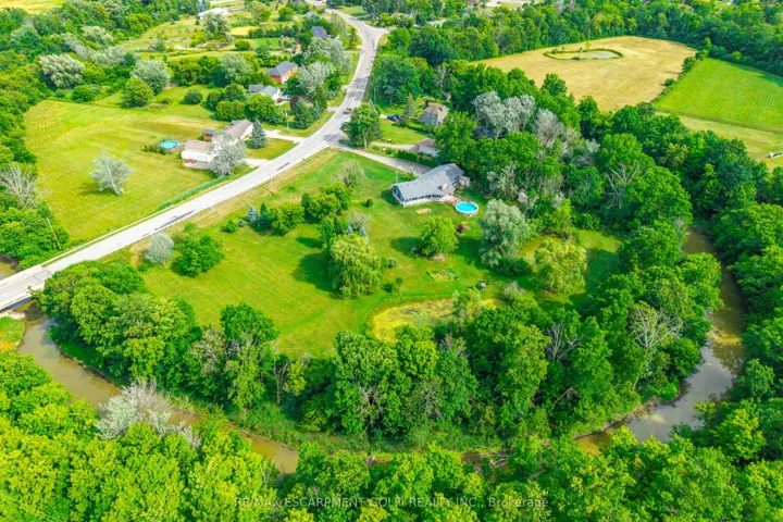 Welcome to your own private oasis just 15 minutes from Stoney Creek. Nestled on over 4 beautifully landscaped acres along the Chippawa Creek, this exceptional property offers a rare combination of privacy, nature, and convenience. The spacious ranch-style bungalow features a sunken living room, expansive windows with stunning rear-facing views, and a covered back porch that runs the full length of the homeperfect for relaxing or entertaining in the peaceful surroundings. A fully self-contained in-law suite with a separate entrance offers incredible flexibility for multigenerational living, guests, or extended family. Designed with accessibility in mind, the suite adds comfort and function to this already versatile layout. The partially finished basement adds even more potential for recreation or storage. Outside, the property showcases manicured lawns, two spring-fed ponds, and an above-ground pool, making it a dream for outdoor living. The home has been thoughtfully updated with back roof shingles in 2019 and front shingles in 2025, a new furnace, A/C, and hot water tank in 2024, plus new windows in the bathroom and primary bedroom. The entire home was freshly painted in 2021. This is the perfect escape for those seeking country serenity without sacrificing access to city amenities a truly special property ready to be enjoyed.
