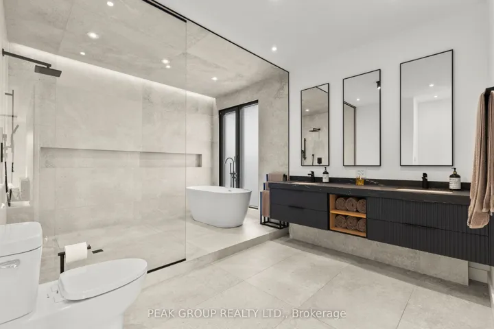 Modern Luxury Meets Refined Design Built by Rahnama Homes, this masterpiece two-storey residence is ideally located in the highly sought-after community of St. Davids in Niagara-on-the-Lake. Perfectly positioned on a corner lot, this home exemplifies modern architecture and elegant craftsmanship. From the moment you step inside, you’re greeted by a grand open staircase, soaring ceilings, and expansive windows that flood the space with natural light.Custom feature walls and designer finishes throughout create an immediate sense of sophistication. As you continue through the grand foyer, the home unfolds into a striking open-concept living space that seamlessly connects the great room, dining area, and kitchen. The kitchen serves as the heart of the home-anchored by a 10-foot island, surrounded by premium cabinetry, beautiful countertops, high-end appliances, and designer fixtures. Recessed lighting and commercial-grade windows enhance the serene, airy ambiance, while your 20-foot custom sliding doors blur the line between indoor and outdoor living, perfect for entertaining or quiet relaxation. Upstairs, discover four spacious bedrooms retreats, each with its own private ensuite and walk-in closet. The primary suite evokes the essence of a luxury hotel, where privacy and openness are masterfully balanced. The walk-in closet, adorned with floor-to-ceiling custom cabinetry, flows effortlessly into a spa-inspired 5-piece ensuite, complete with a soaking tub, glass shower, and designer double vanity. Luxurious living continues into your fully finished lower level -featuring a home gym, theatre room, and recreation area with walk-out access to the backyard. A stylish 3-piece glass-tiled bathroom, ample storage, and a cold cellar complete this versatile space.Every inch of this residence has been curated with care and precision. From its architectural details to its luxurious finishes, this home is more than a place to live-it’s a statement in modern luxury living.