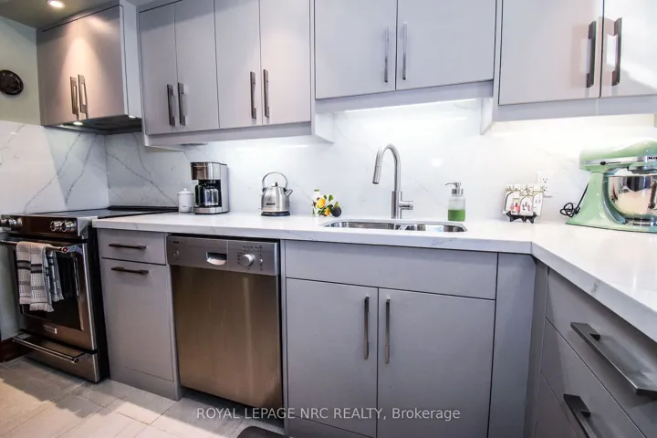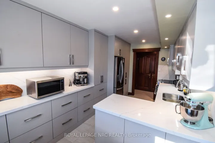 Stunning waterfront views from this elegant condo located in the heart of Port Dalhousie. Just steps away from the historic carousel and Lakeside Park. Walk along the pier and enjoy the many quaint restaurants and shops along the waterway. Take in the peaceful views of Martindale Pond from your open air balcony. Enjoy some shade with motorized awnings included. Located on the top floor with one of the best views in the building. This classy 2 bedroom, two bathroom unit has been extensively renovated over the last few years. Inside you will find high end finishes throughout this nearly 1400 sq ft unit. Recent upgrades include a gorgeous kitchen with expansive quarts counter tops and wall to wall custom cabinetry.(2024) The stainless steel appliances and eat in area with water views complete this gourmet kitchen. The open concept living/dining room are spacious and lovely for entertaining. The new feature wall gives added character and charm to the space. The primary suite includes a walk in closet and picturesque views as well as a large, updated 5 pc spa like ensuite with a freestanding tub, glass shower and double vanity. Enjoy the convenience of in suite laundry and an additional bedroom that could be used as a den or office. The main bathroom was fully renovated in 2025. If you are looking to simplify life while experiencing the beauty of Port Dalhousie and breathtaking views from almost every window, look no further. Turn key and ready for you. This building also offers one parking spot, a large storage locker and a common gathering room, workout room and sauna.
